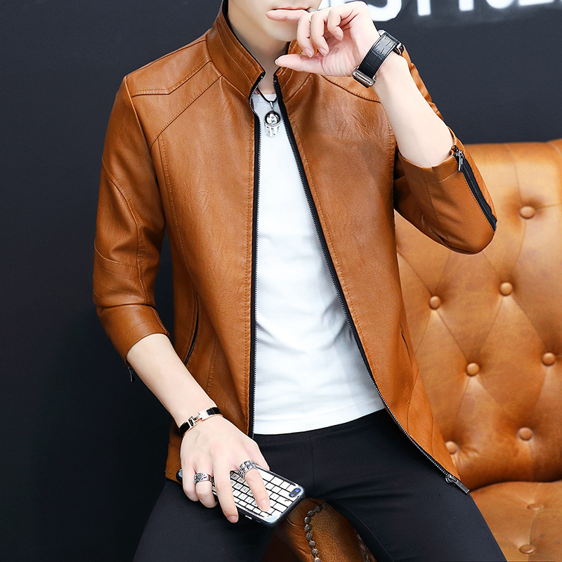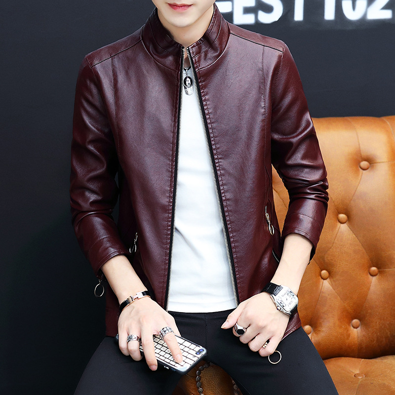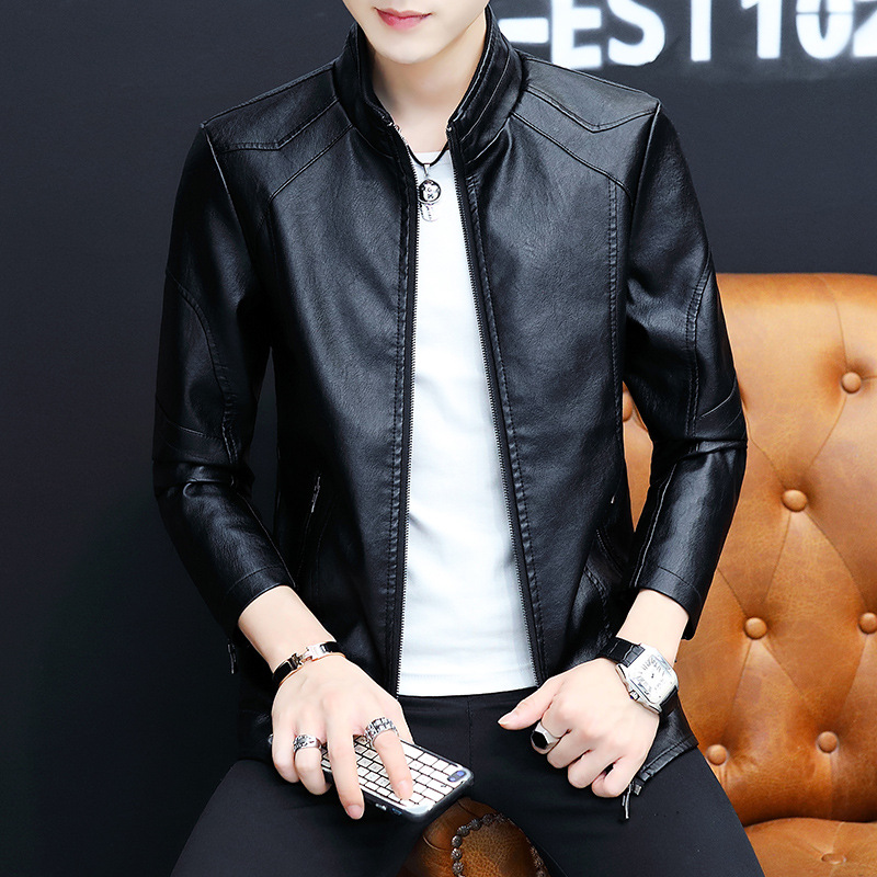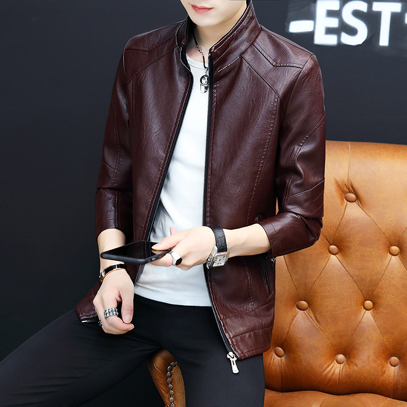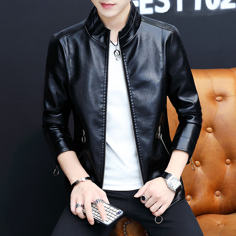 가죽 남자의 가을과 겨울 남자의 오토바이 가죽 기모 가죽 자켓 스탠드 칼라 남자의 가죽 자켓 공장 아울렛의 한국어 버전스토어 가기