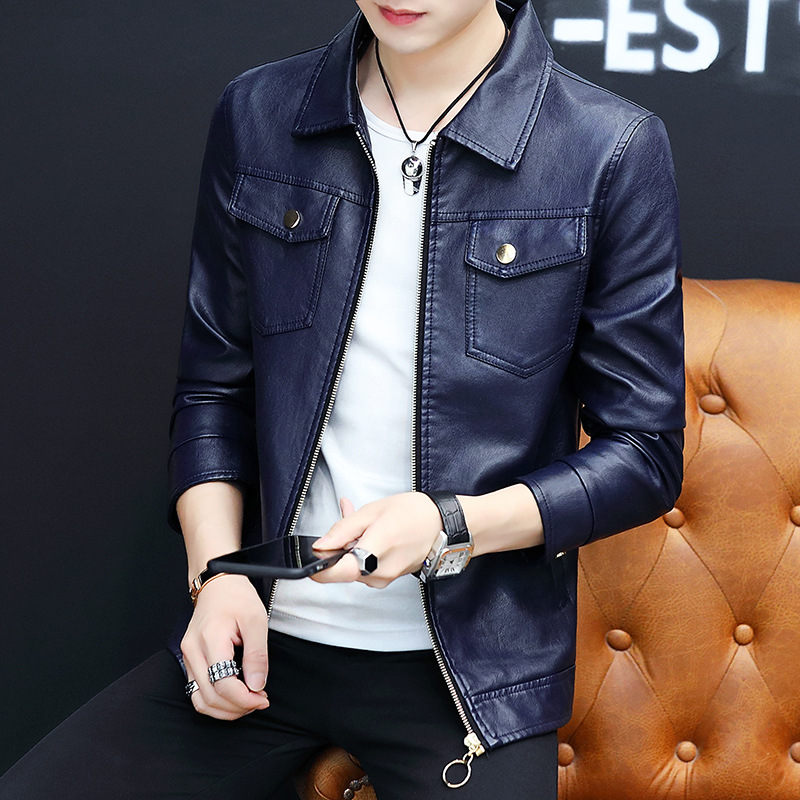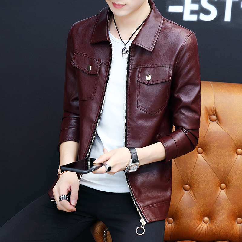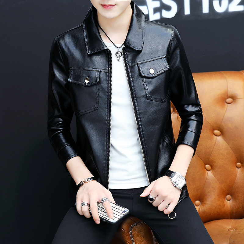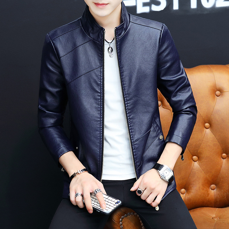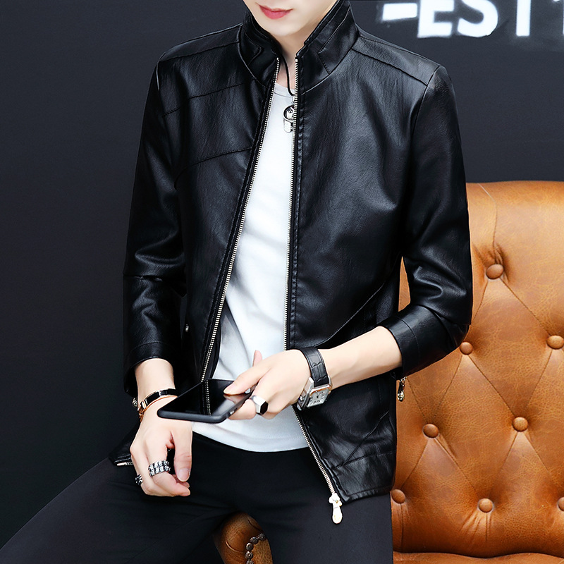 가죽 남자의 가을과 겨울 남자의 오토바이 가죽 기모 가죽 자켓 스탠드 칼라 남자의 가죽 자켓 공장 아울렛의 한국어 버전스토어 가기
