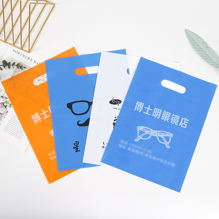 플라스틱 플랫 입 핸드백 pe 보석 안경 가게 의류 핸드백 쇼핑 가방 네 손가락 가방 고정 인쇄 로고스토어 가기