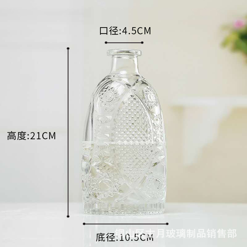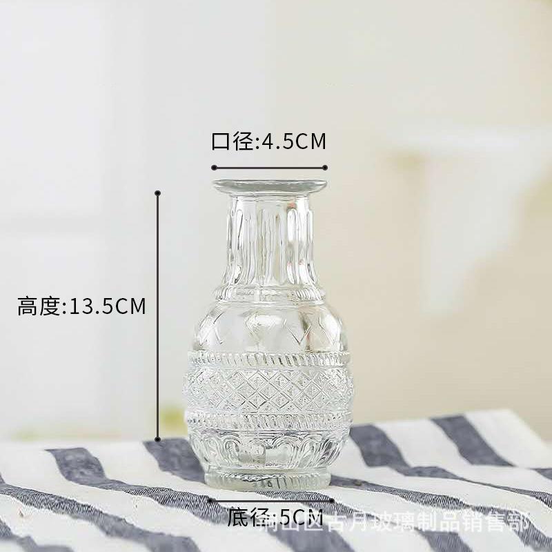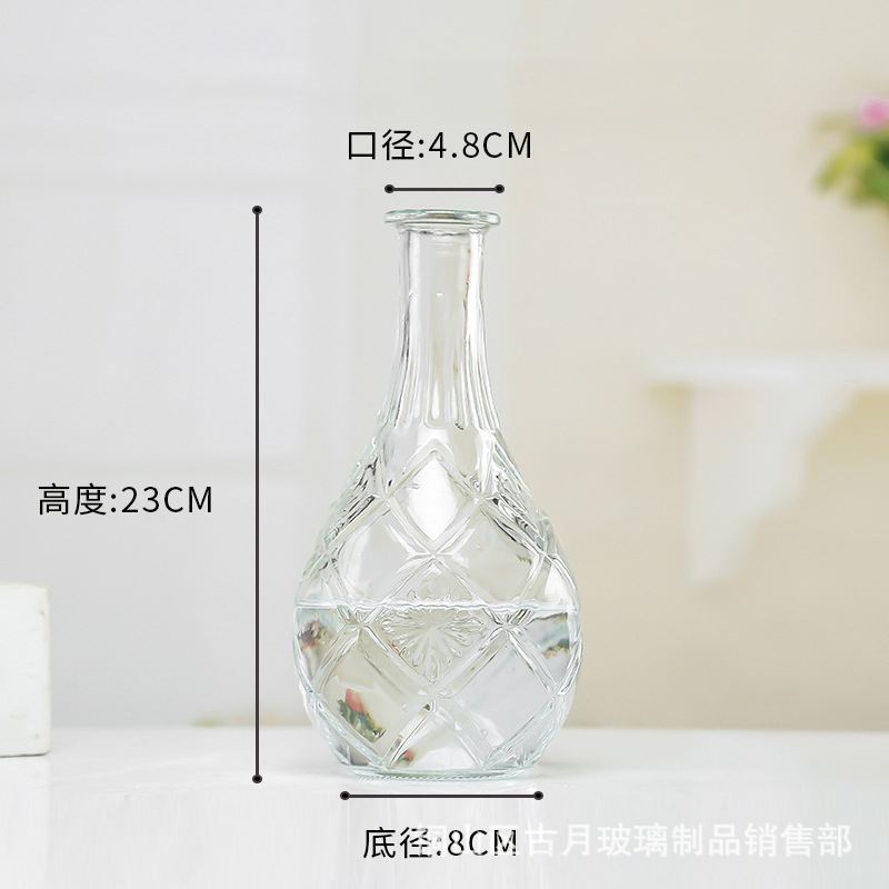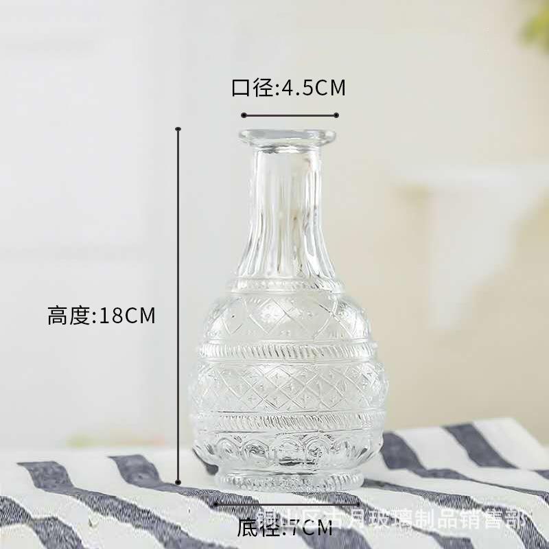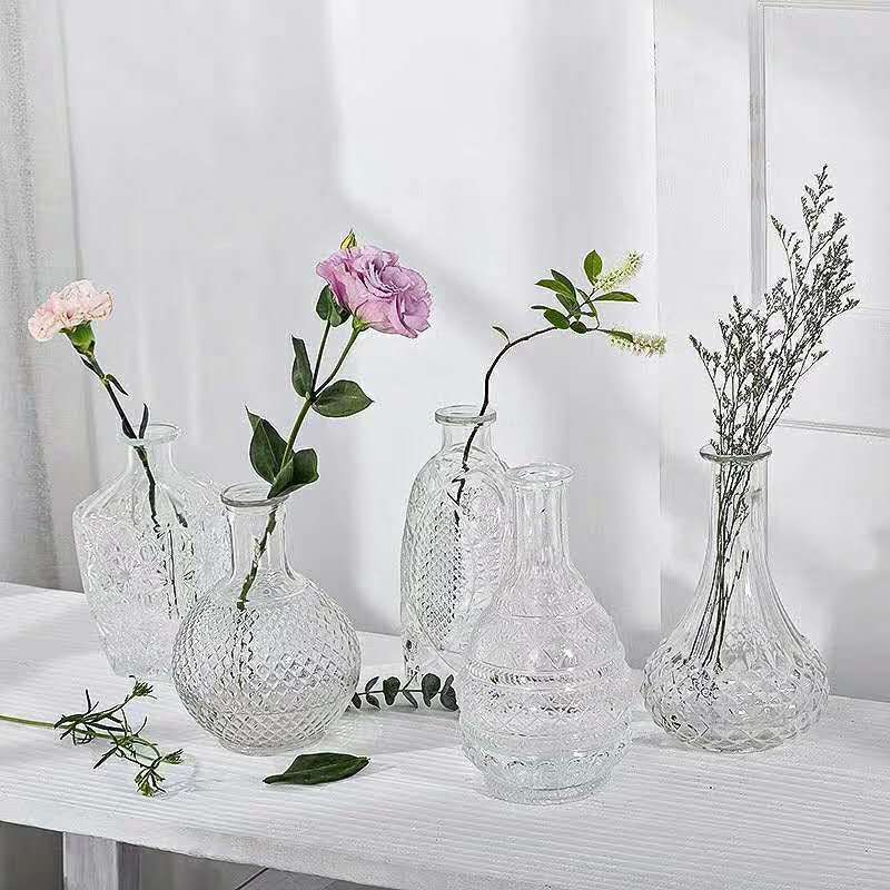 엠보싱 공예 유리병 유럽풍 레트로 스타일의 좁은 입구 꽃병 투명 유리 꽃병 가정용 페인팅 꽃병 생화/드라이플라워스토어 가기