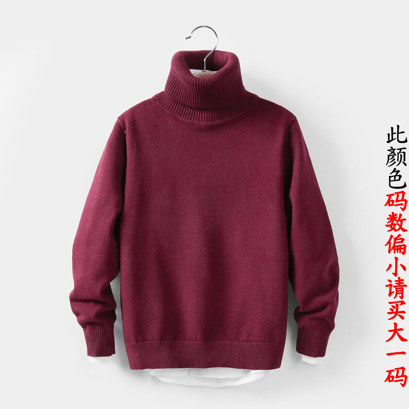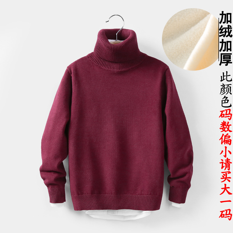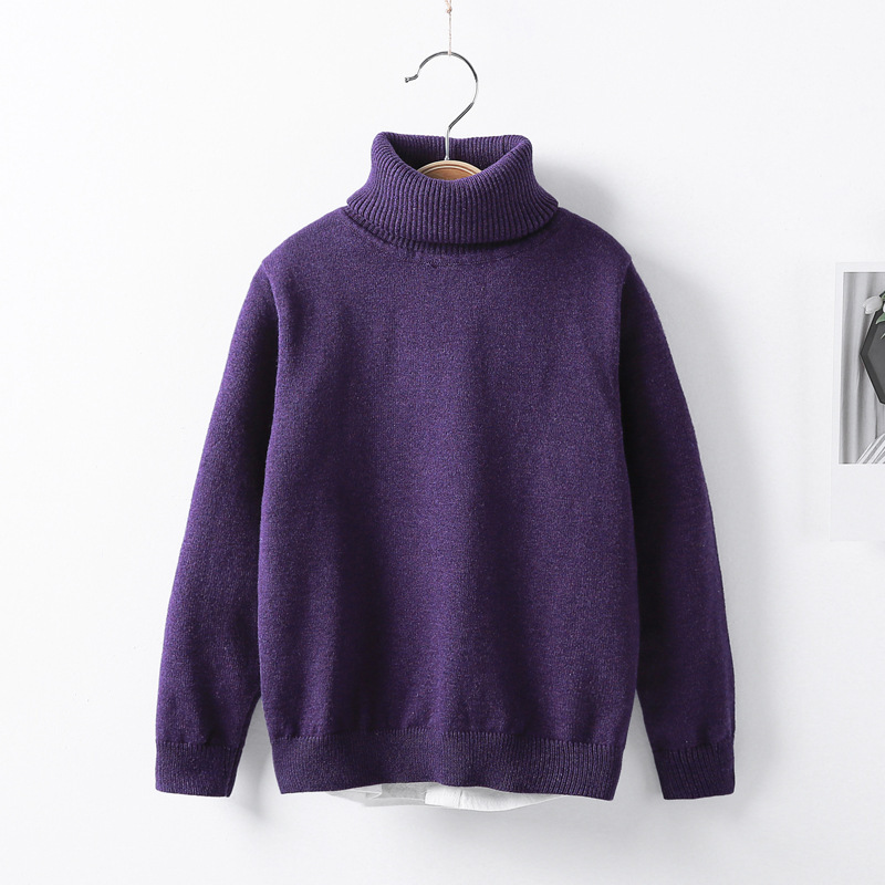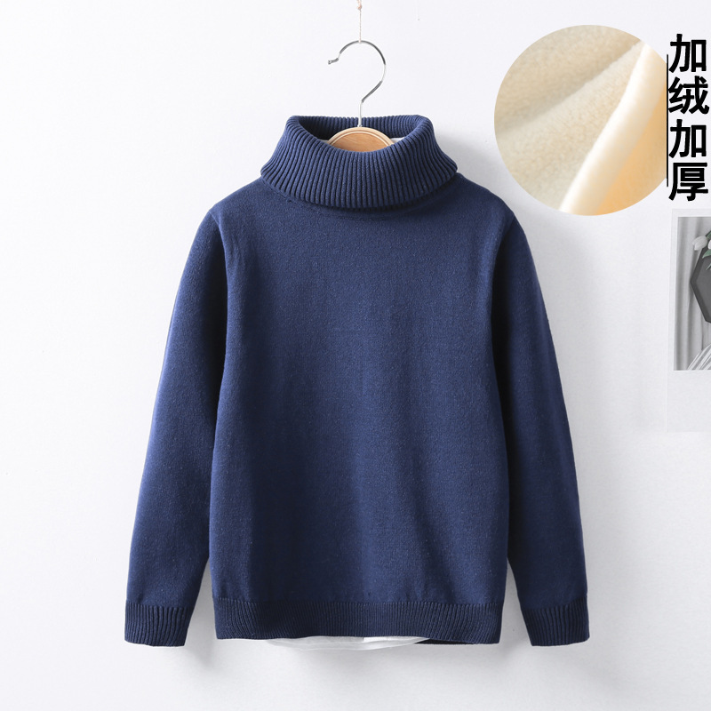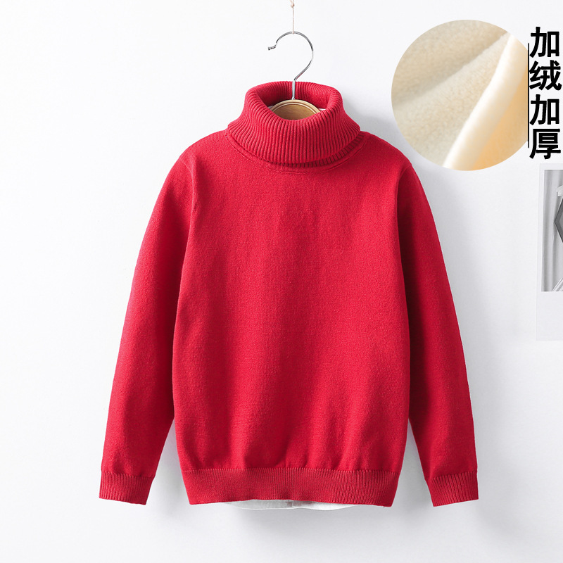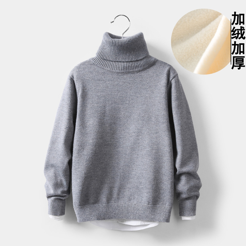 어린이 중간 및 큰 어린이 가을과 겨울 하이 칼라 니트웨어 기모 베이스 셔츠 심플 솔리드 컬러 소년 소녀 스웨터
