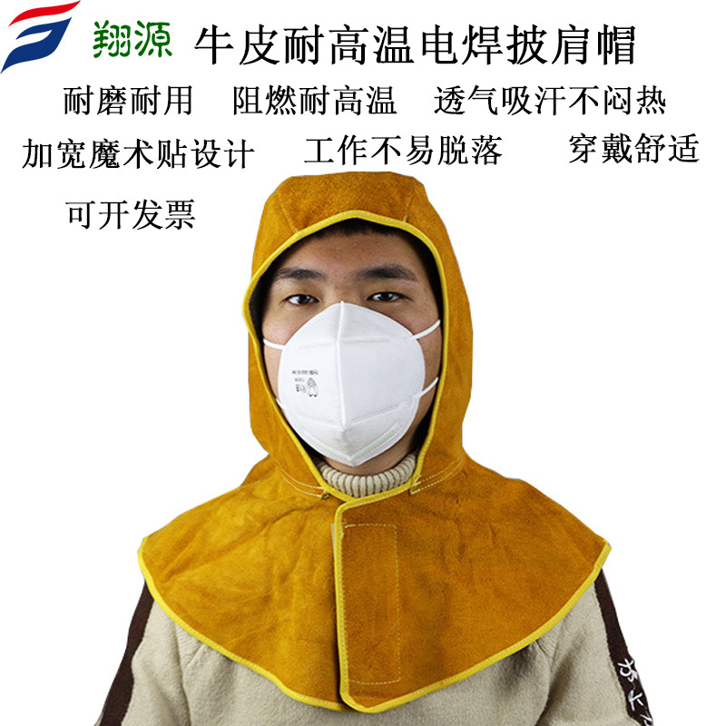 소가죽 용접 보호 숄 캡 두꺼운 이중층 고온 내성 난연 헤드 마운트 노동 보호 용접기 캡스토어 가기