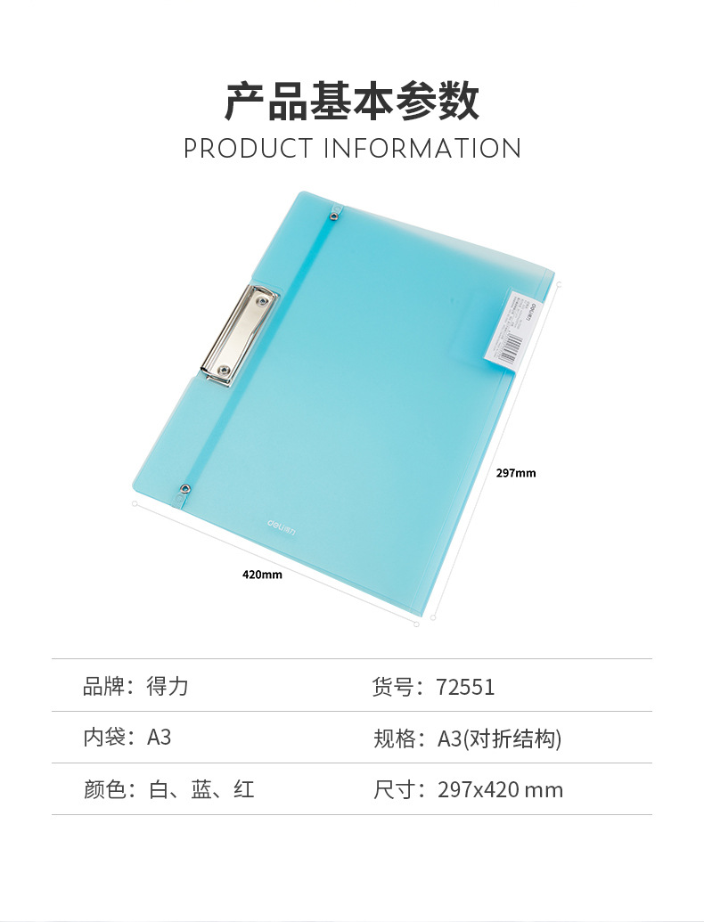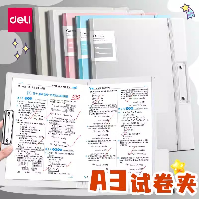 델리 종이 폴더 72551 학생 투명 폴더 초등학교 학생 종이 폴더 중학생 A3 파일 폴더
