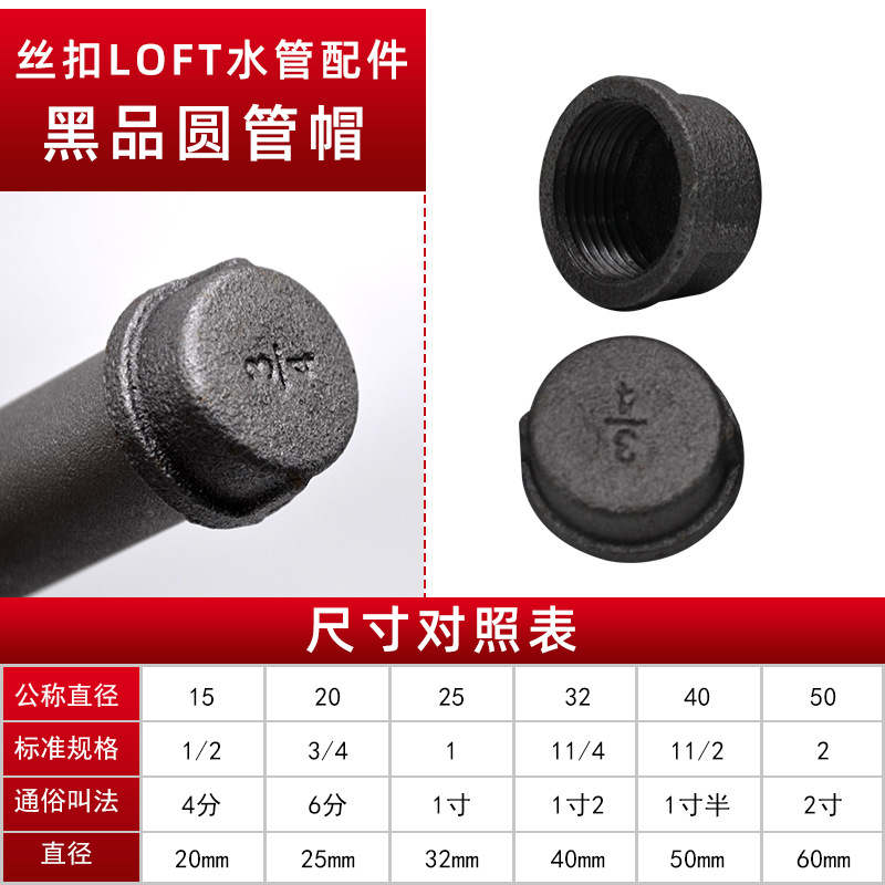 • 블랙 라운드 튜브 캡 DN15
