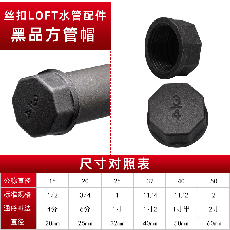 • 블랙 제품 사각 튜브 캡 DN15
