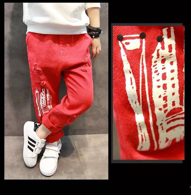 봄가을 유아용 한국 스타일 남아 데님 팬츠, 찢어진 디자인, 트렌디한 얇은 일자 바지, 해외 직구, 인기 상품