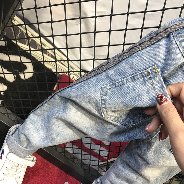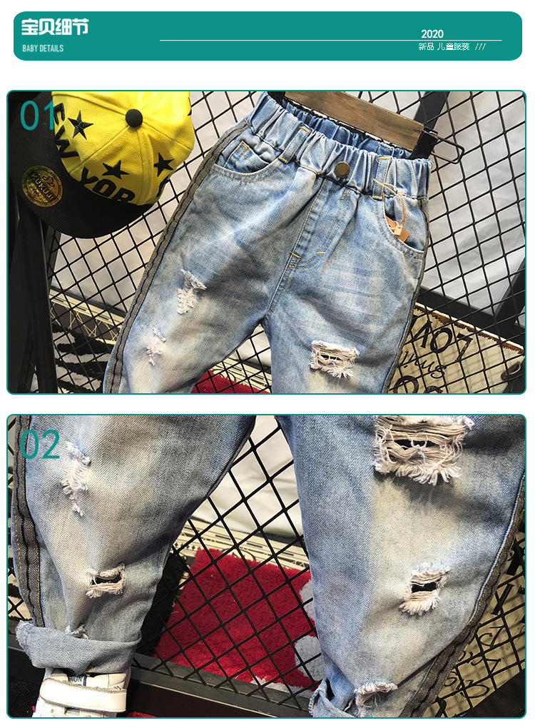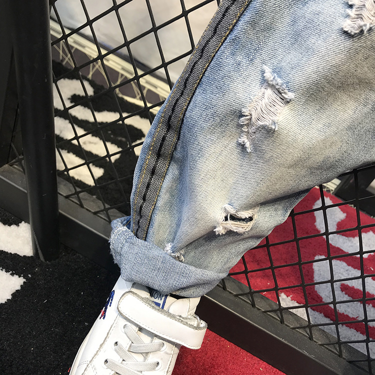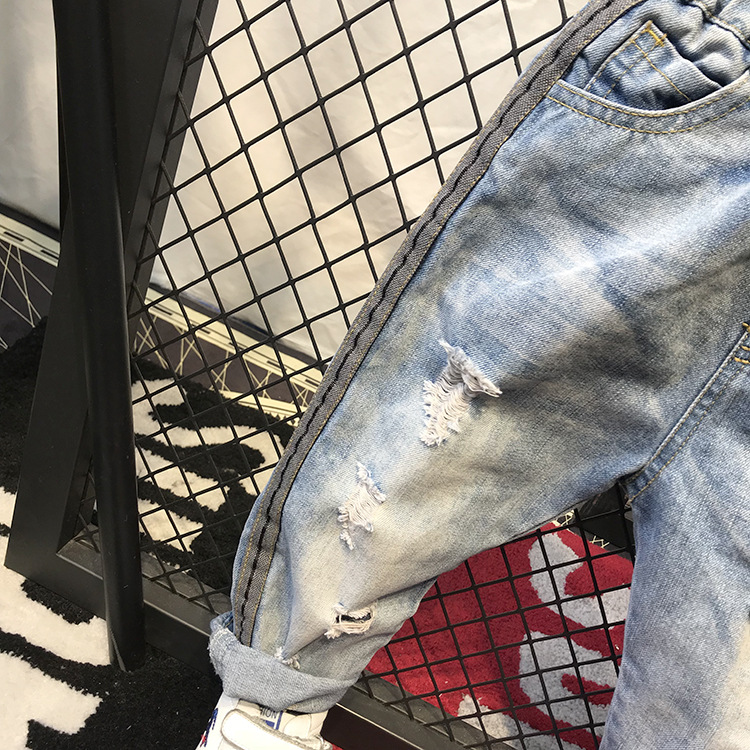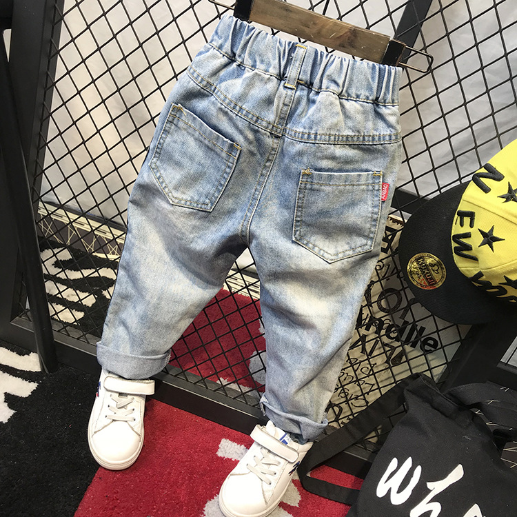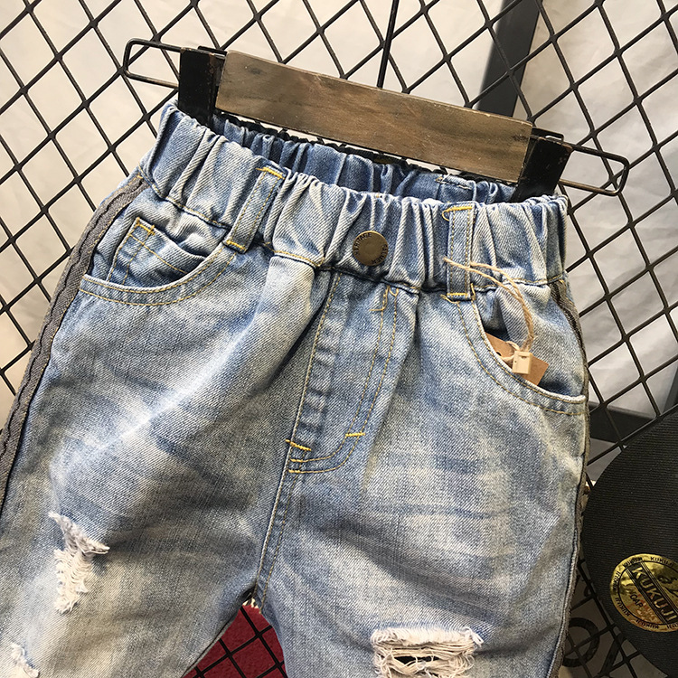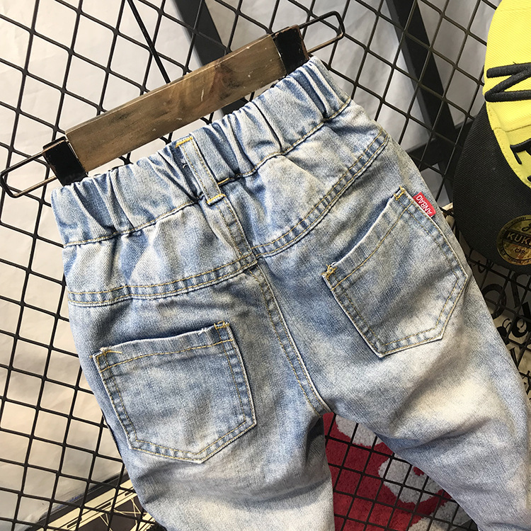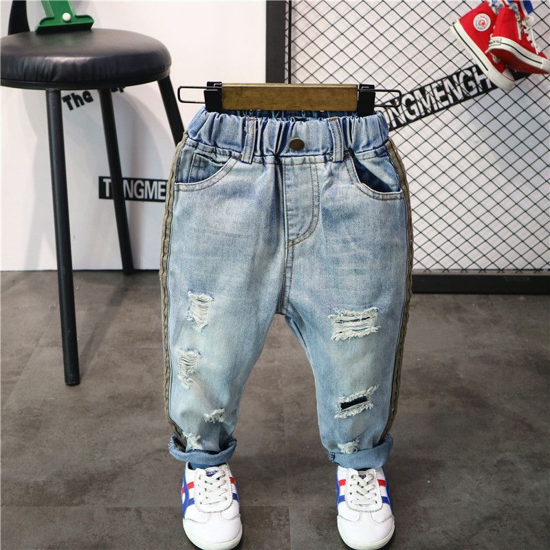 봄가을 유아용 한국 스타일 남아 데님 팬츠, 찢어진 디자인, 트렌디한 얇은 일자 바지, 해외 직구, 인기 상품스토어 가기