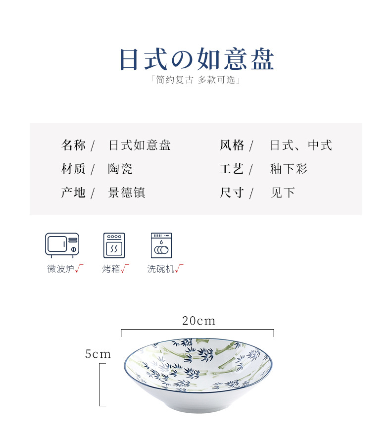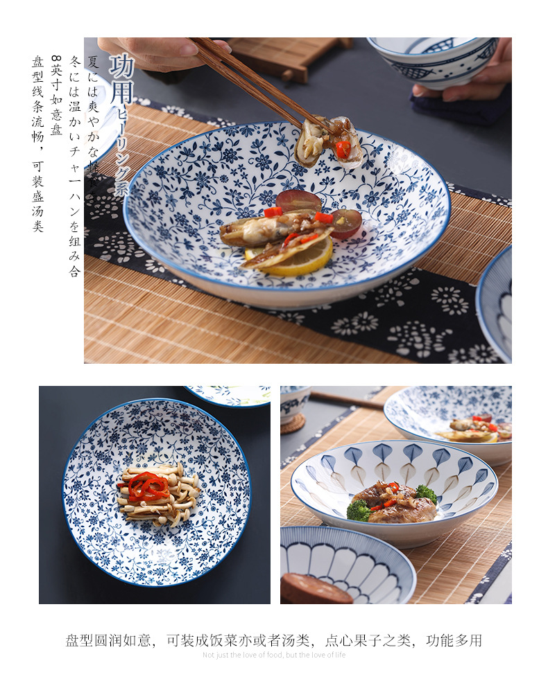 8 인치 언더글레이즈 컬러 Ruyi 접시 in 중국 스타일 라운드 접시 plate Jingdezhen 가정용 세라믹 깊은 접시 밥 접시 수프 접시