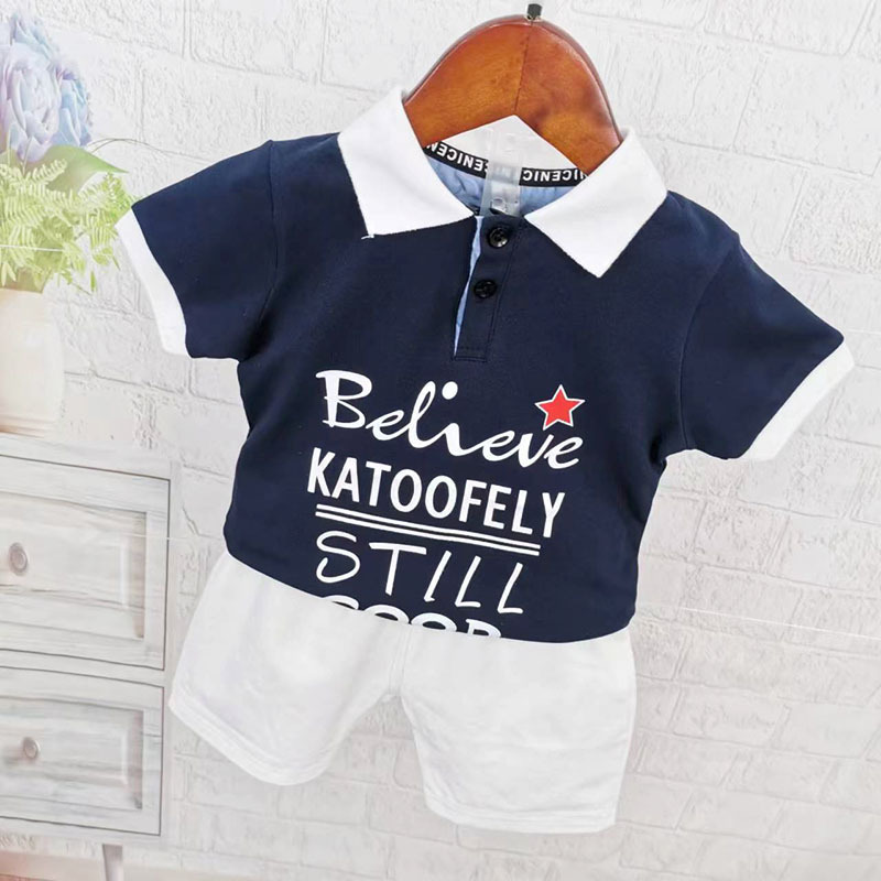 아동복 남자 아기 반팔 티셔츠 한국 스타일 여름 서양 스타일 폴로 셔츠 남아 라펠 탑 반바지 세트 머리스토어 가기