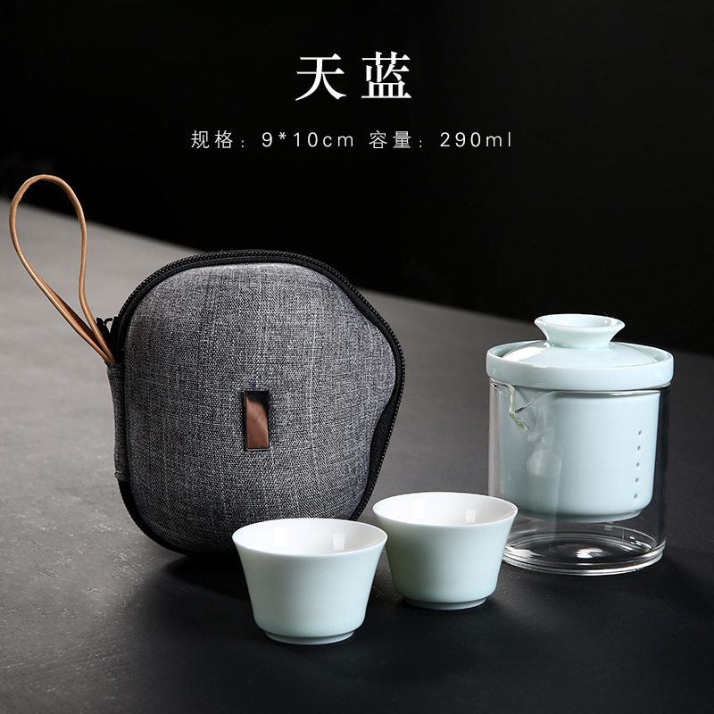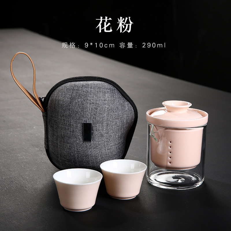 휴대용 익스프레스 컵 한 냄비 두 컵 야외 가방 유리 주전자 찻잔 여행 차 세트 작은 세트 맞춤형스토어 가기