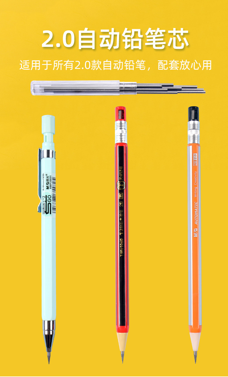 뜨거운 제조 업체 공급 2.0 노 커팅 연필 리드 대담하지 쉽게 깰 2B 기계식 연필 교체 코어 도매 문구스토어 가기