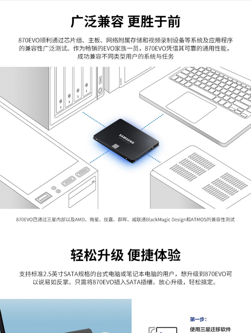 정품 삼성 SSD 870EVO 250g 500g 1T 노트북 데스크탑 SSD2T 용스토어 가기