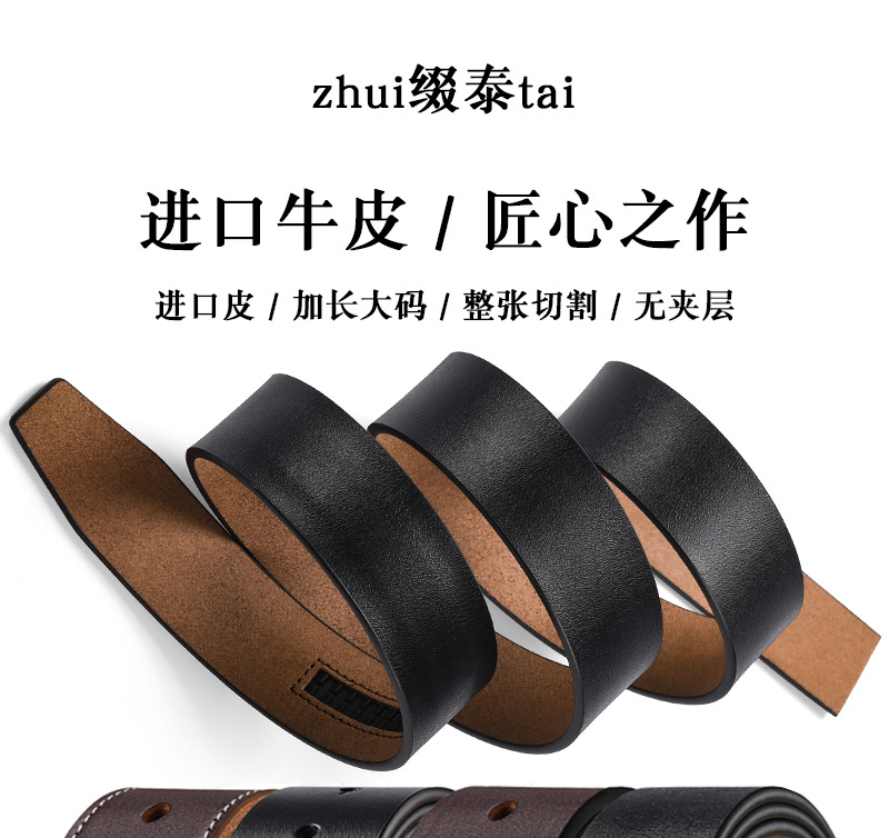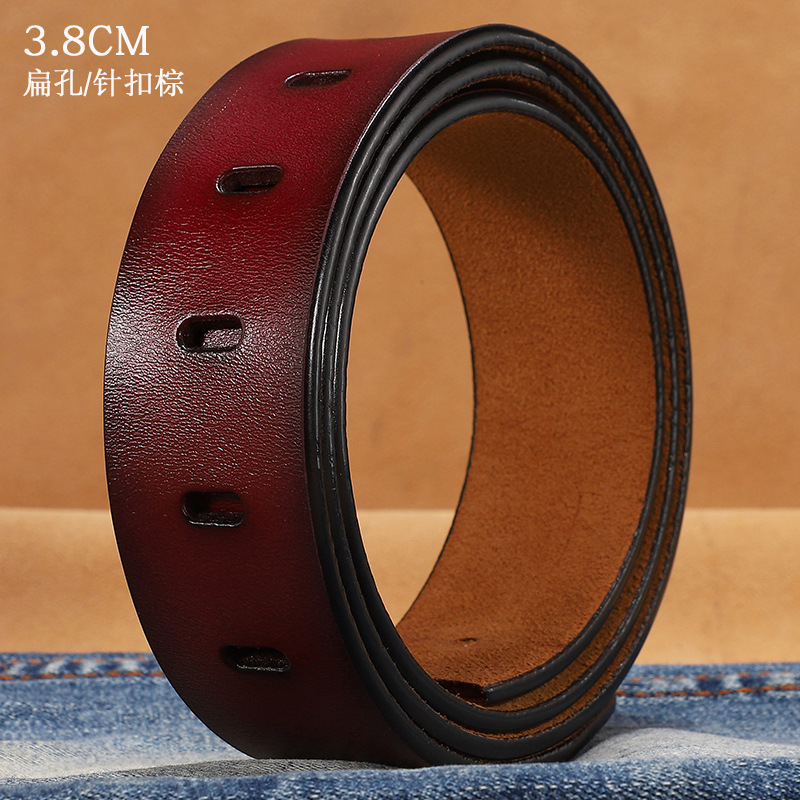 플레이트 입 남성용 정품 가죽 부드러운 버클 스트립 소가죽 헤드리스 벨트 벨트 버클이 천공 된 남성용 빈티지 벨트