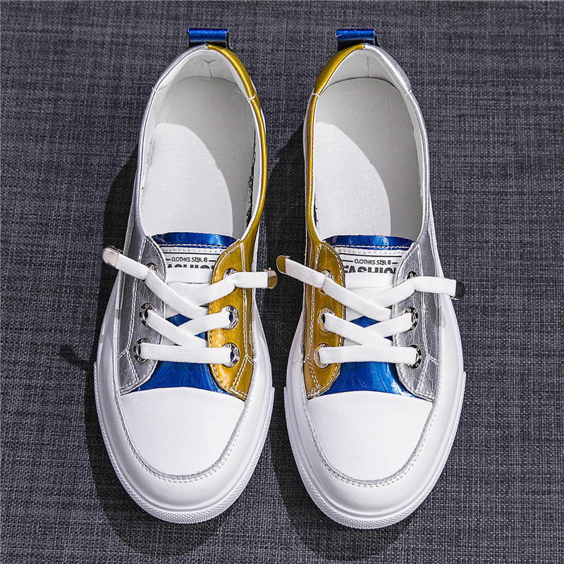 정품 가죽 배색 화이트 스니커즈 여성 운동화 2025 봄 신상 다용도 캐주얼 학생 플랫 슈즈 여성용 트렌디 신발스토어 가기