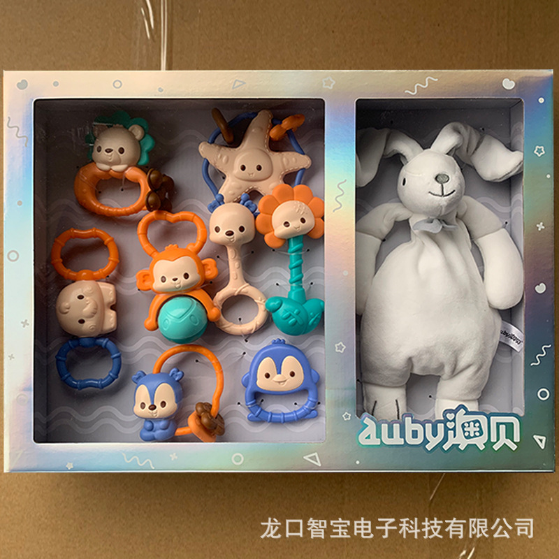 아오베이 치아 접착제 딸랑이 장난감 아기 물린 물린 0-9 개월 신생아 아기 합병 수건 인형 선물 상자 세트 3스토어 가기
