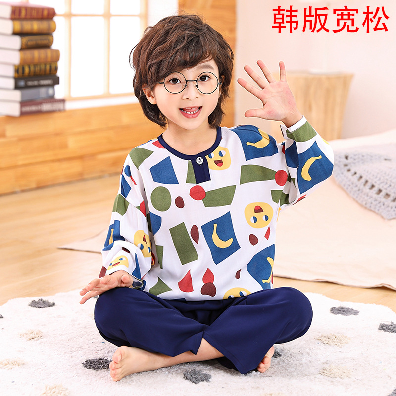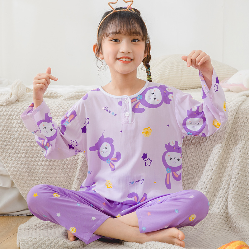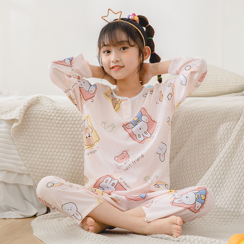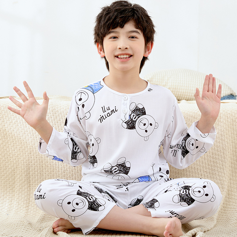 새로운 아동용 면화 실크 잠옷 여름 얇은 소년 소녀면 실크 긴 소매 세트 lyocell 홈 의류 도매