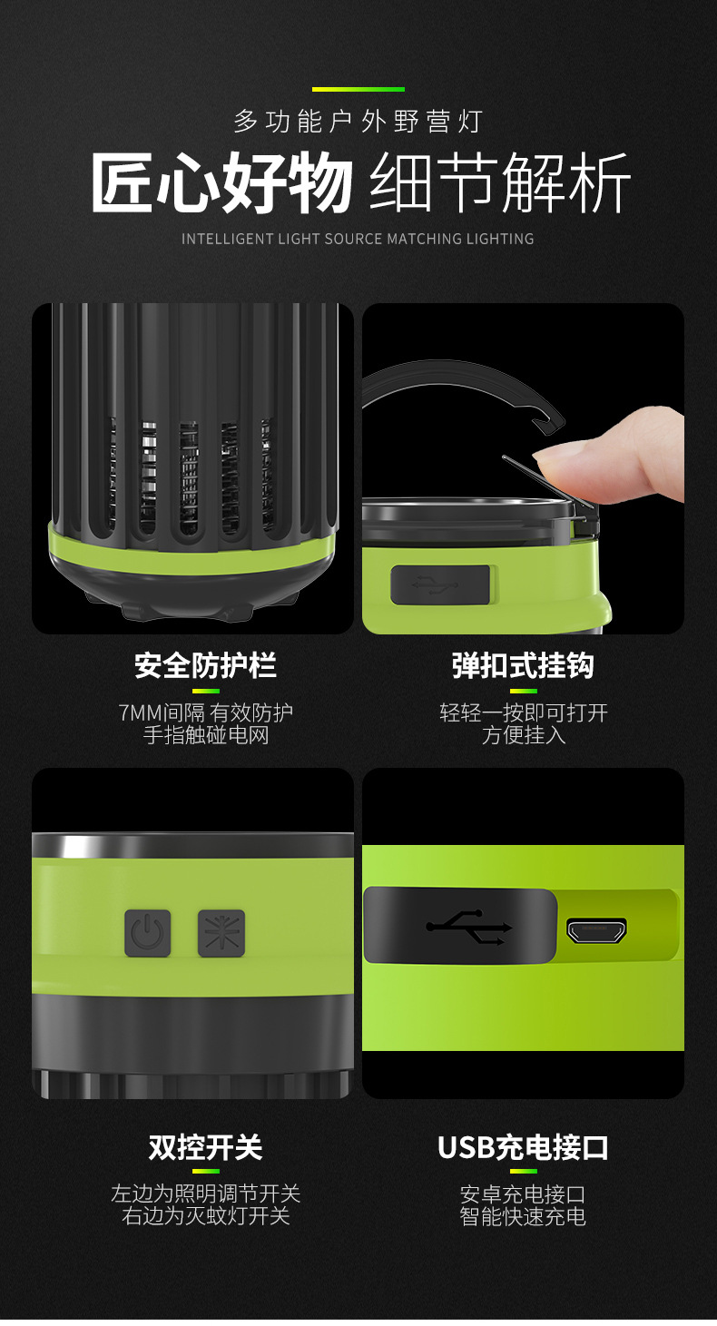 태양 전기 충격 모기 램프 야외 캠핑 램프 모기 램프 USB 충전 COB 강한 빛 작은 테이블 램프 휴대용