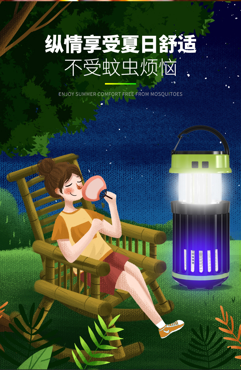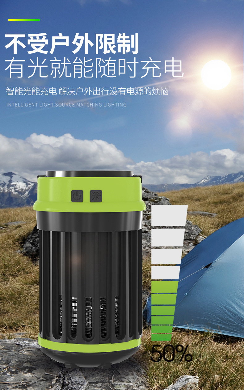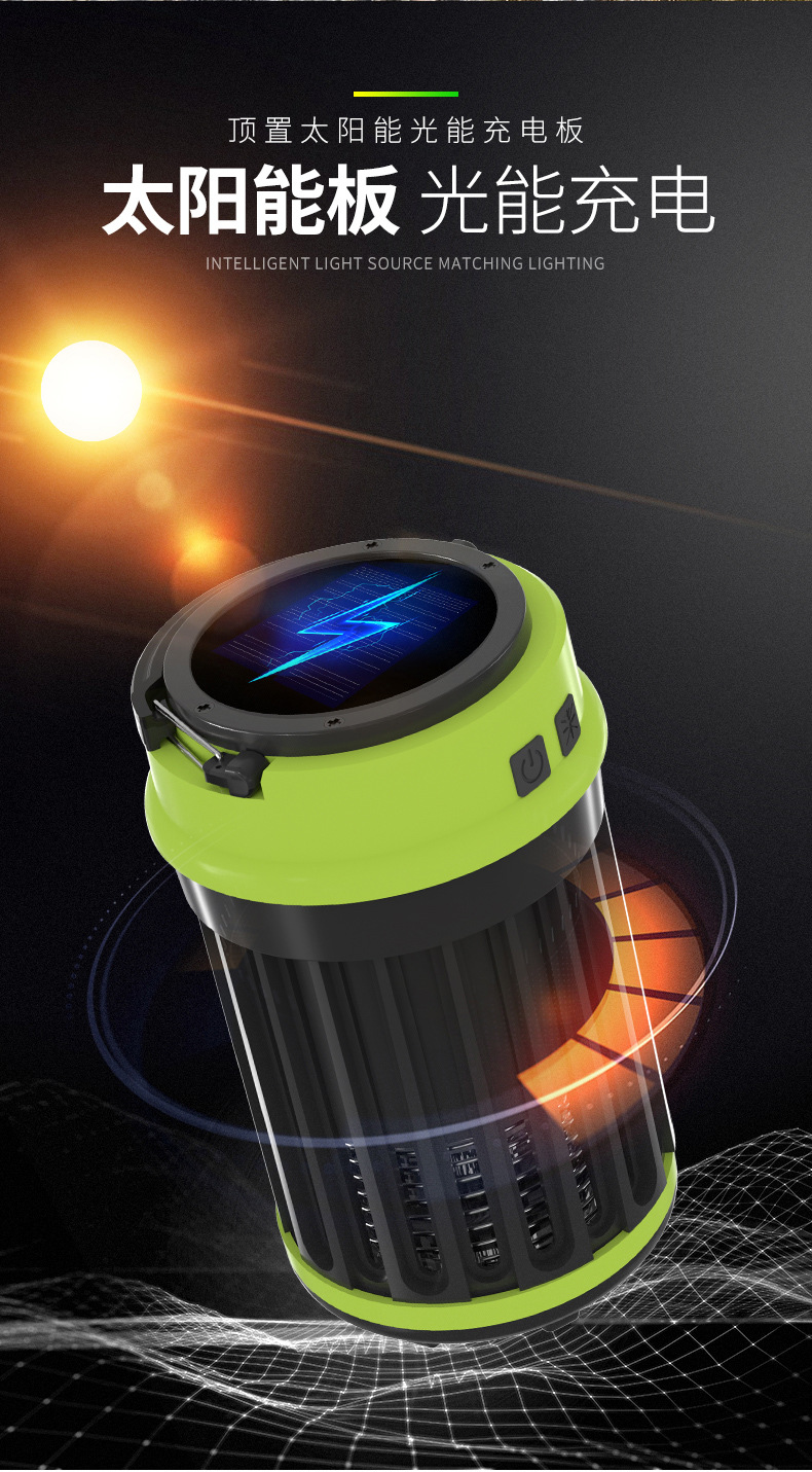 태양 전기 충격 모기 램프 야외 캠핑 램프 모기 램프 USB 충전 COB 강한 빛 작은 테이블 램프 휴대용스토어 가기