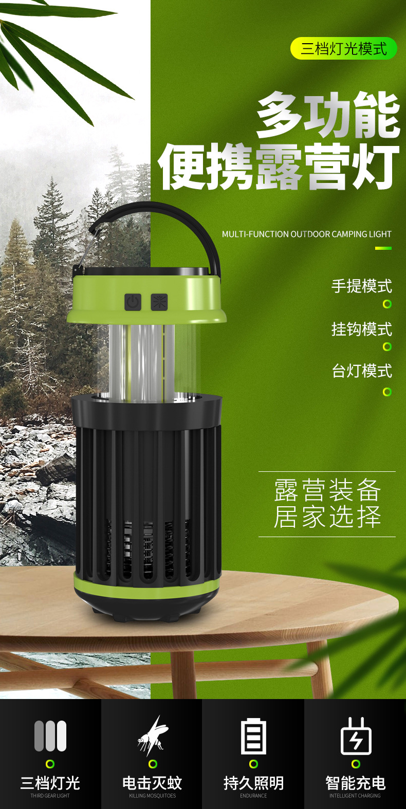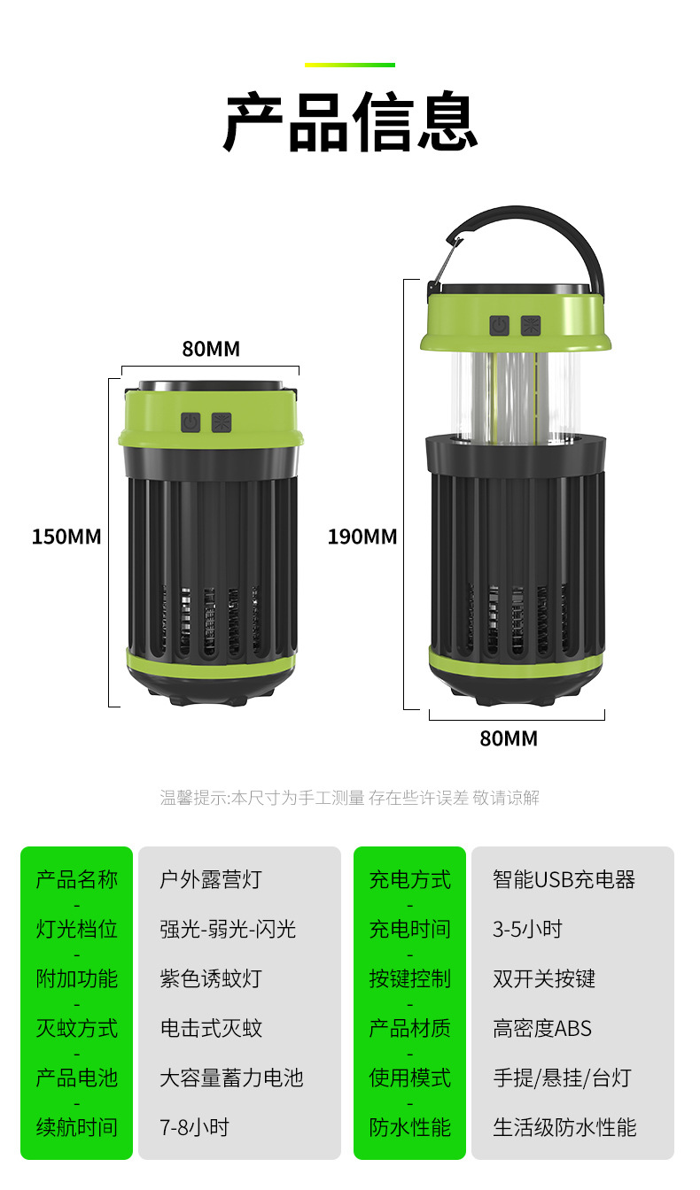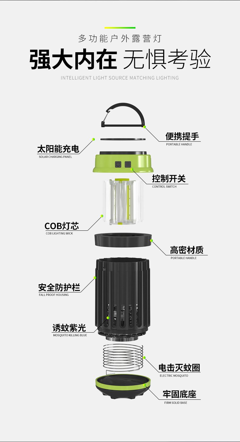 태양 전기 충격 모기 램프 야외 캠핑 램프 모기 램프 USB 충전 COB 강한 빛 작은 테이블 램프 휴대용스토어 가기