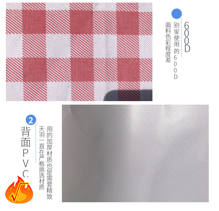 注意:只有好品质红格涂层是高品质背面涂层,其余颜色涂层是600D的普通涂层哦