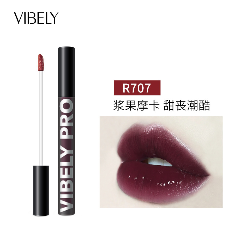 VIBELY 작은 검은 색 거울 공기 입술 유약 보습 및 보습 거울 빛 물 빛 검은 색 튜브 립 광택