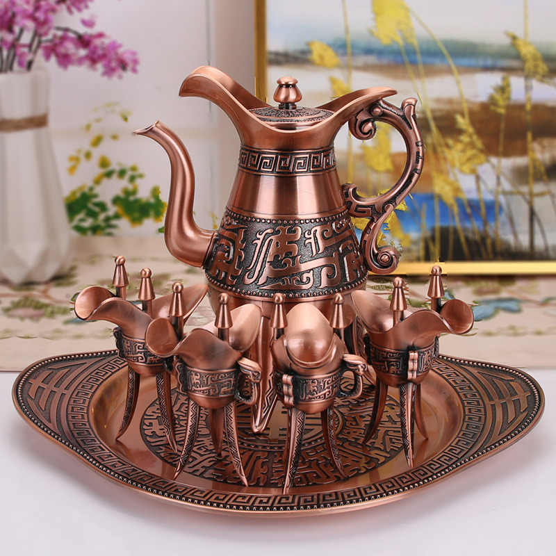 고급 골동품 청동 와인 병 금속 클래식 빈티지 와인 포트 마시는 와인 잔 와인 세트 와인 포트