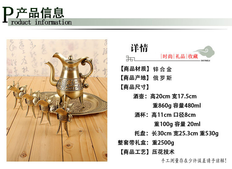 고급 골동품 청동 와인 병 금속 클래식 빈티지 와인 포트 마시는 와인 잔 와인 세트 와인 포트스토어 가기