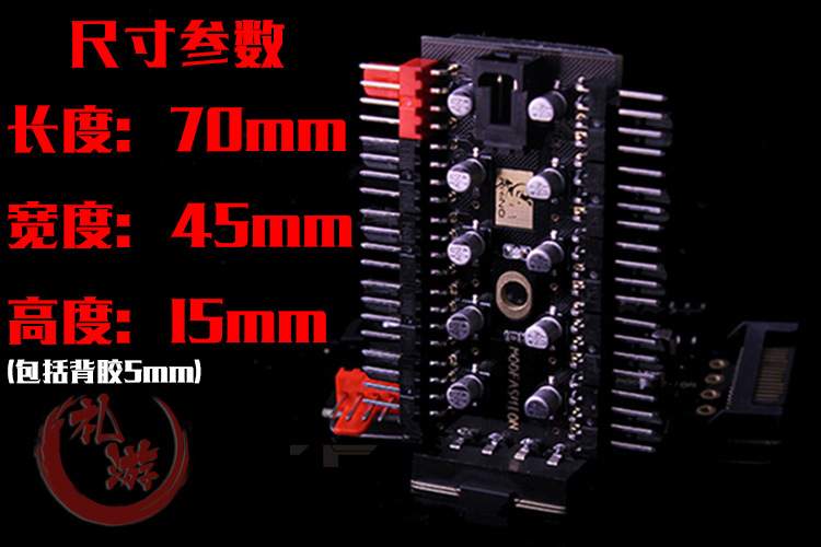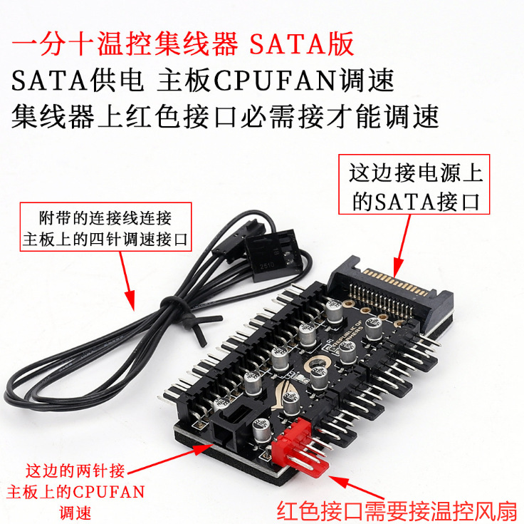 1:扩展10位风扇4针接口,解决主板接口不足,以及集中处理风扇线材。