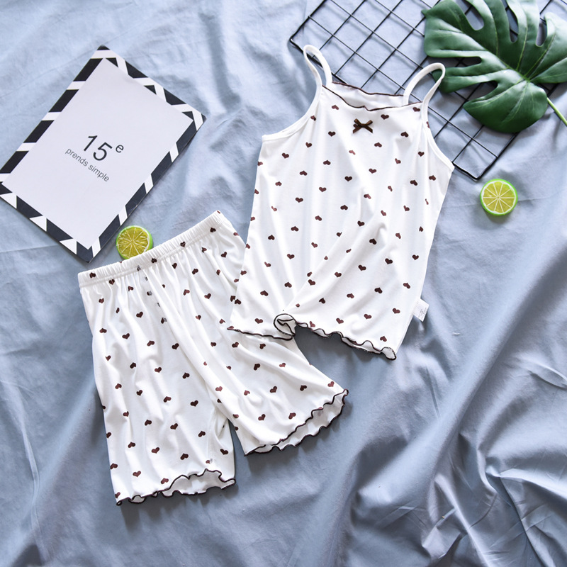 모달 어린이 가정 옷 세트 여름 얇은 공주 여아 에어컨 옷 아기 어린 소녀 슬링 잠옷