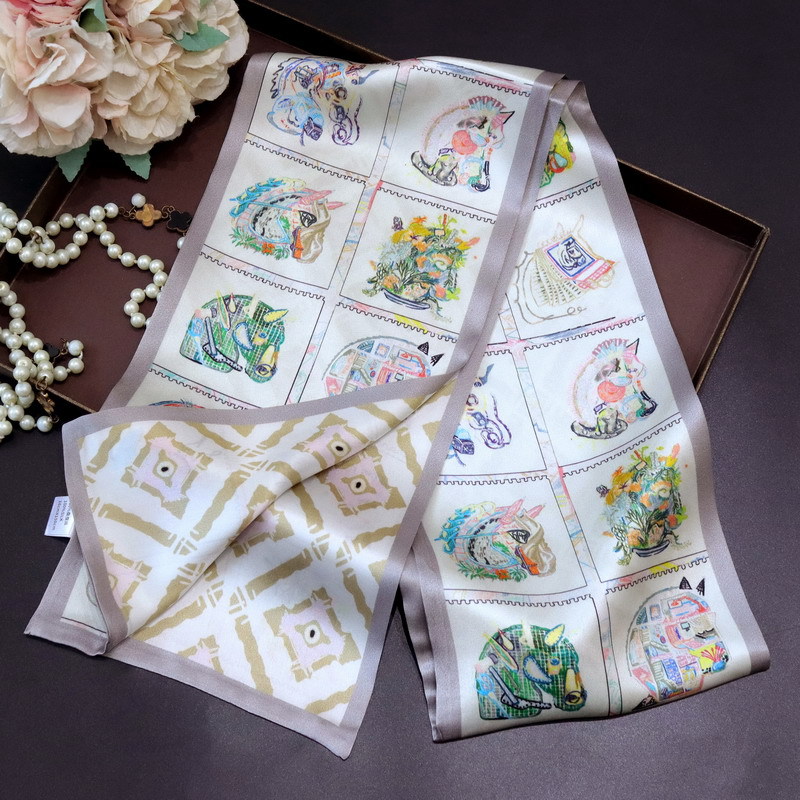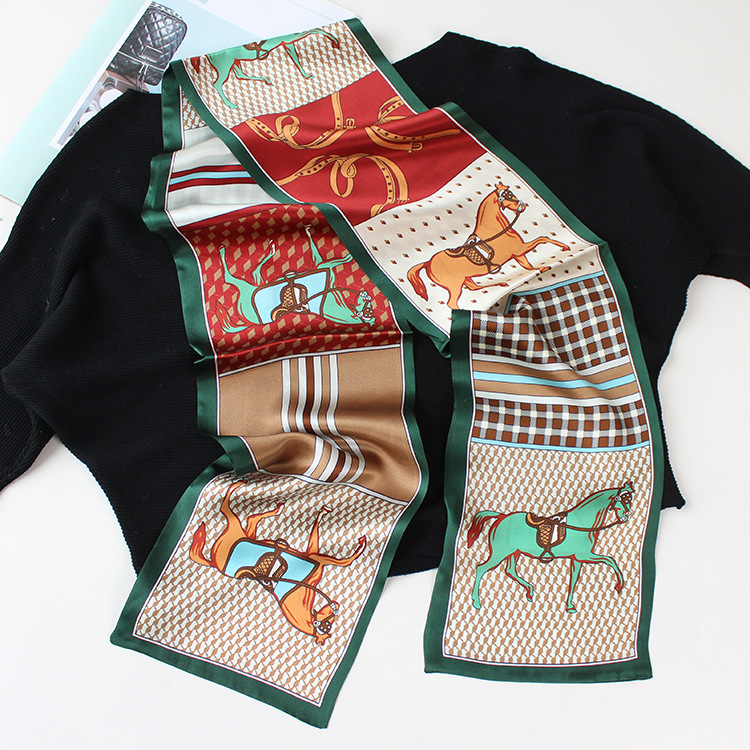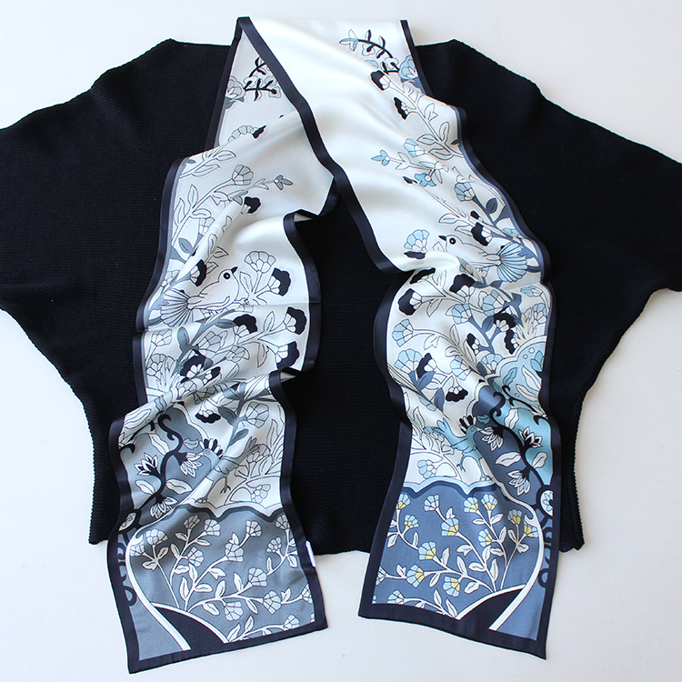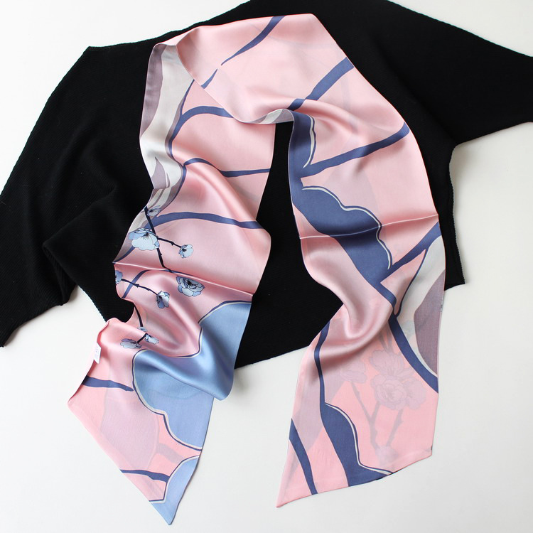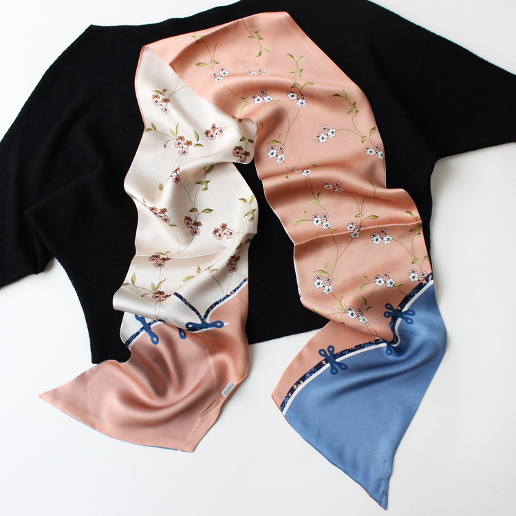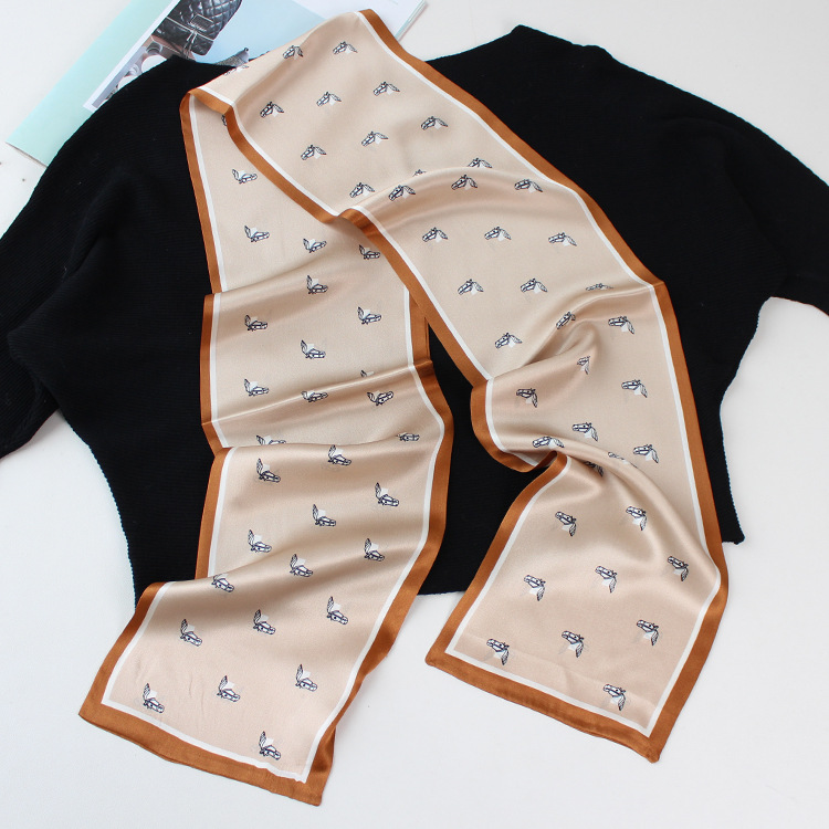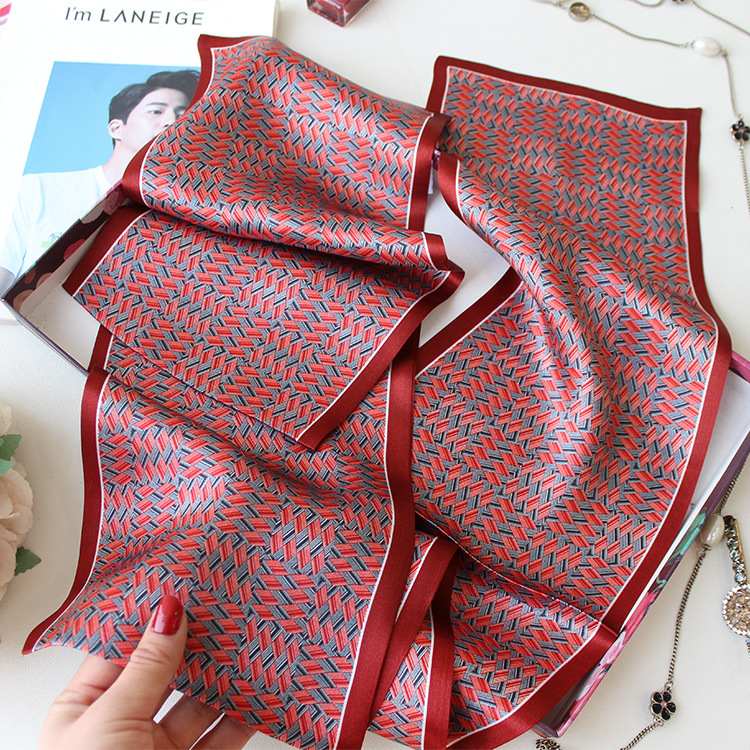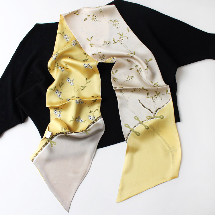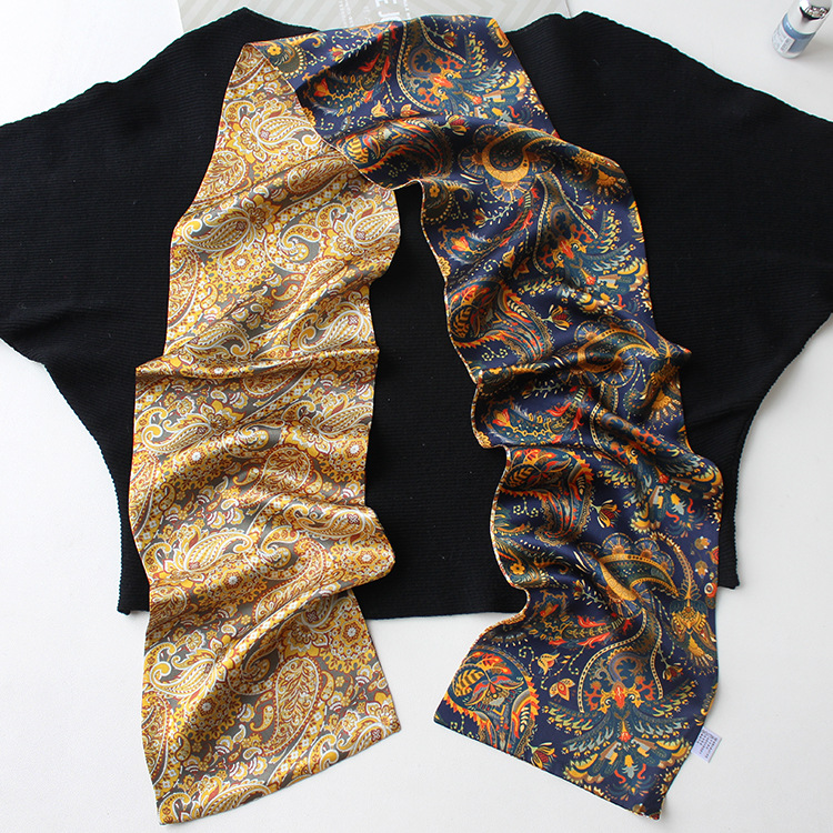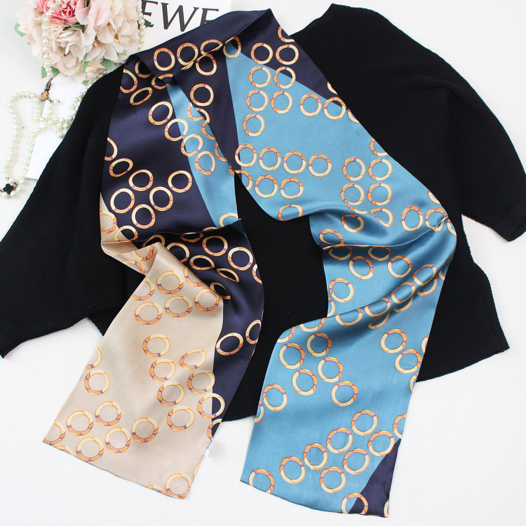 스타 스타일 실크 스카프 긴 더블 레이어 리본 스카프 여성 봄, 여름 다목적 뽕나무 실크 스카프 한국어 버전 멀티 컬러