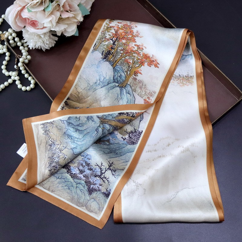 스타 스타일 실크 스카프 긴 더블 레이어 리본 스카프 여성 봄, 여름 다목적 뽕나무 실크 스카프 한국어 버전 멀티 컬러스토어 가기