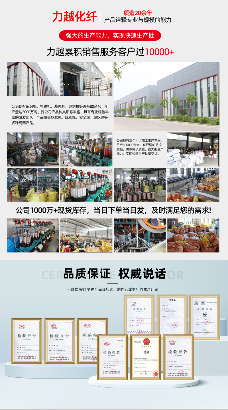 本公司生产的各类编织绳具有抗磨损,延长使用寿命.强度高,抗晒,耐风化,绳体柔软易打结