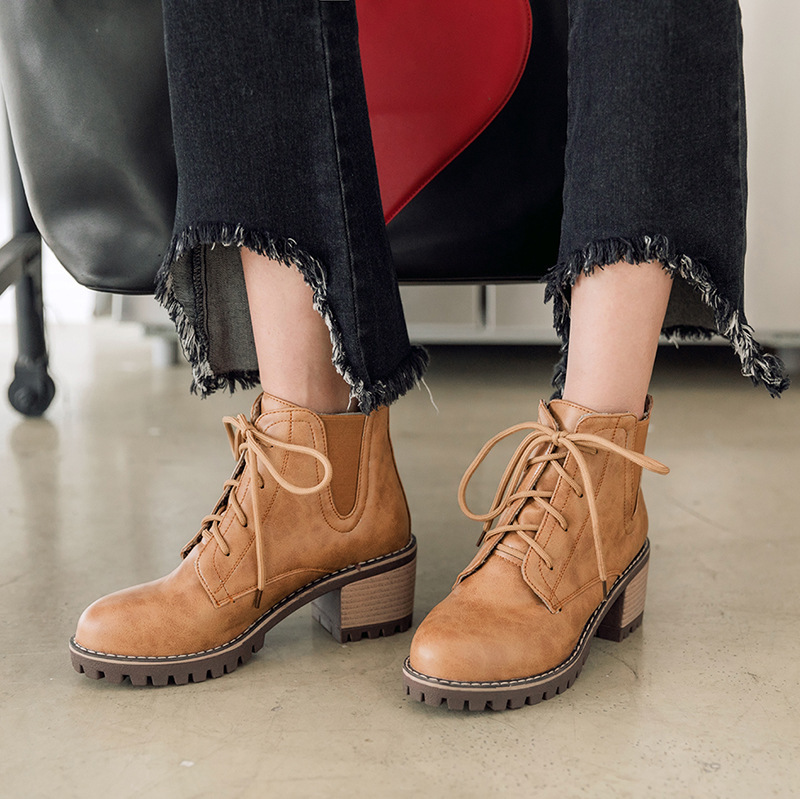 유럽과 미국 수출 대외 무역 여성 부츠 2018 새로운 가을 패션 따뜻한 여성 신발 두꺼운 뒤꿈치 두꺼운 바닥 부츠 힐