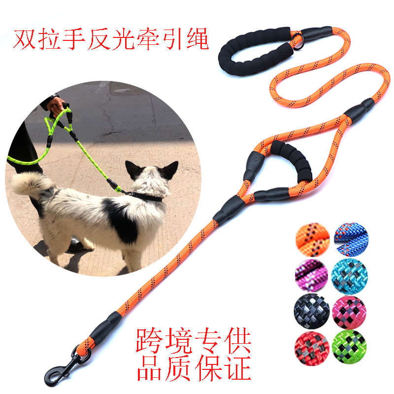 새로운 애완견 용품 야외 개 가죽 끈 나일론 짠 반사 원형 로프 이중 손잡이 개 가죽 끈스토어 가기