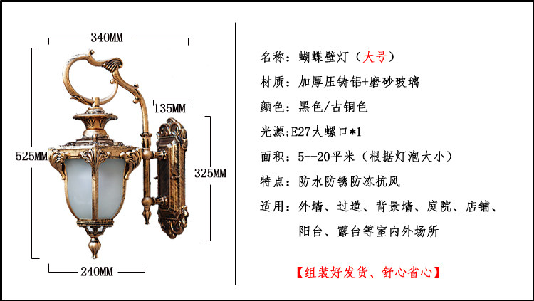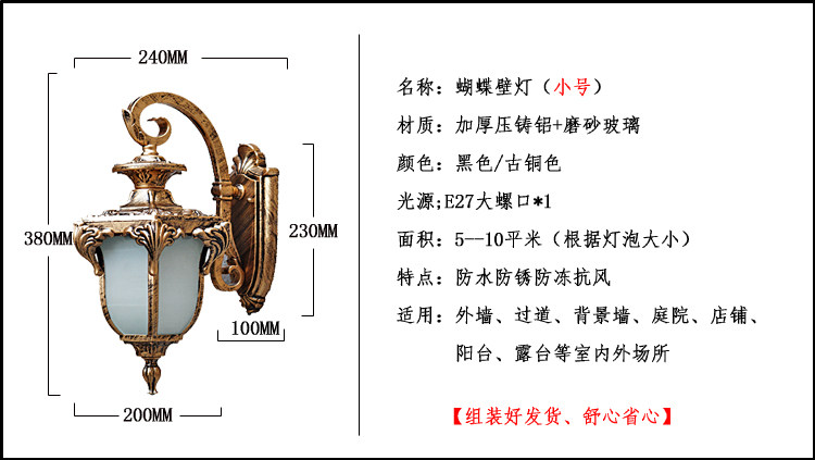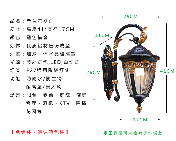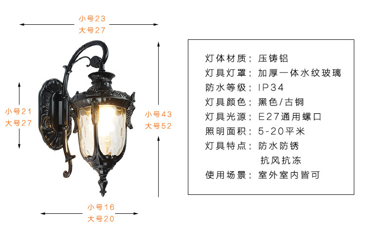 유럽식 방수 미국식 레트로 야외 빌라 벽 안뜰 통로 발코니 문 코너 야외 귀 벽 램프
