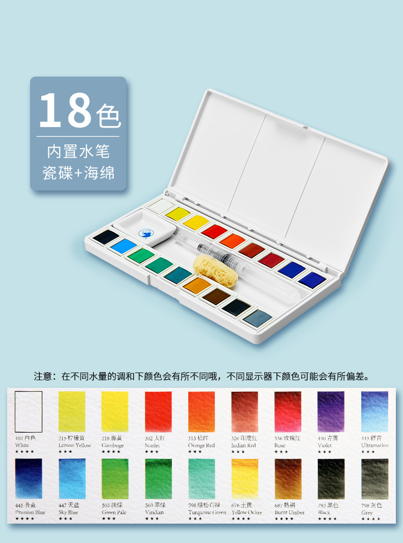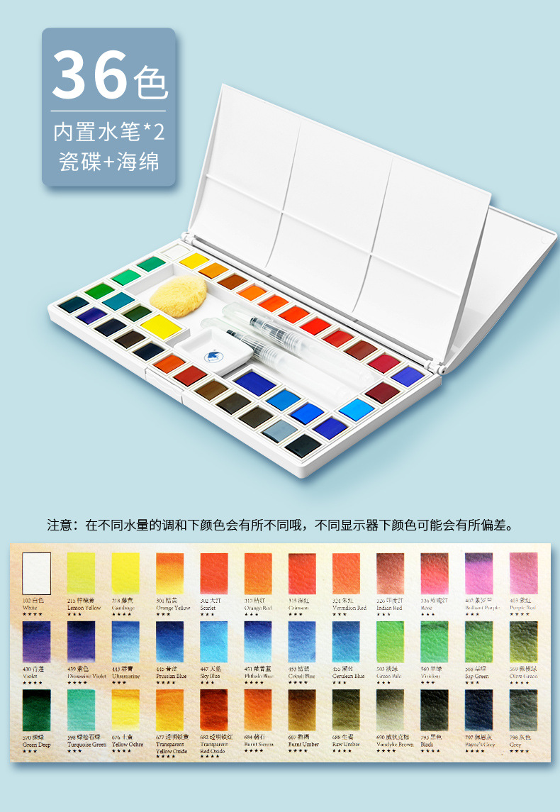 말리 단색 수채화 페인트 세트 36 색 48 색 스케치 손으로 그린 단색 휴대용 고체 분말 그림스토어 가기