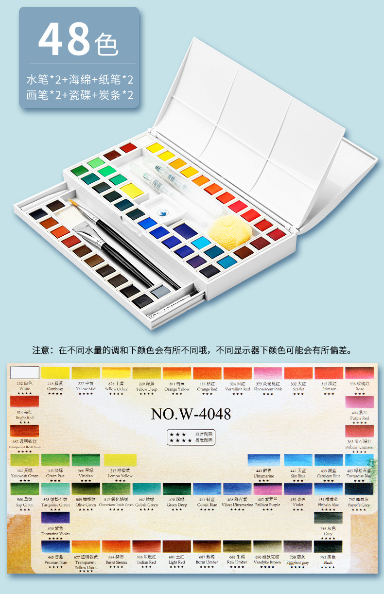 말리 단색 수채화 페인트 세트 36 색 48 색 스케치 손으로 그린 단색 휴대용 고체 분말 그림