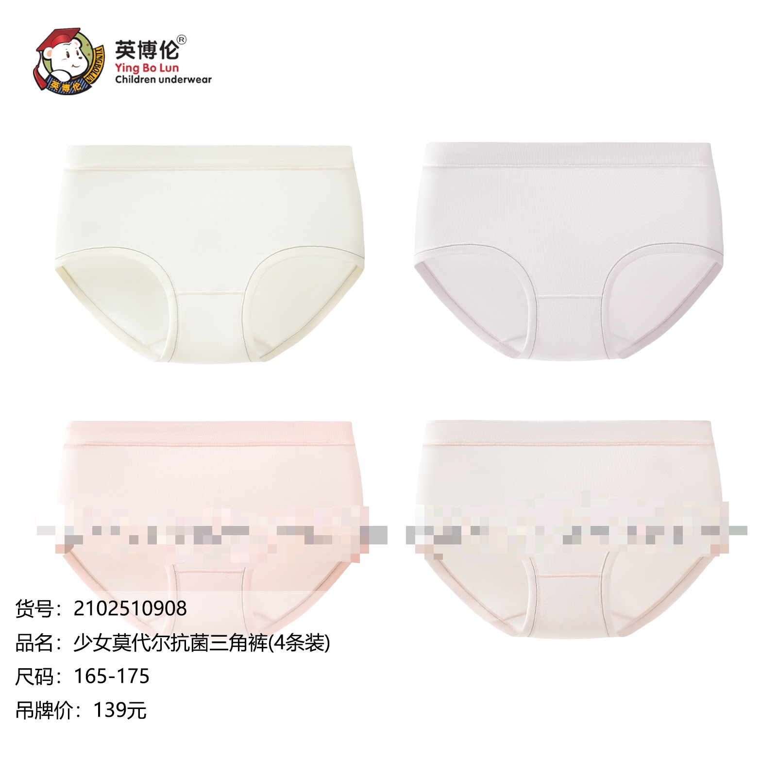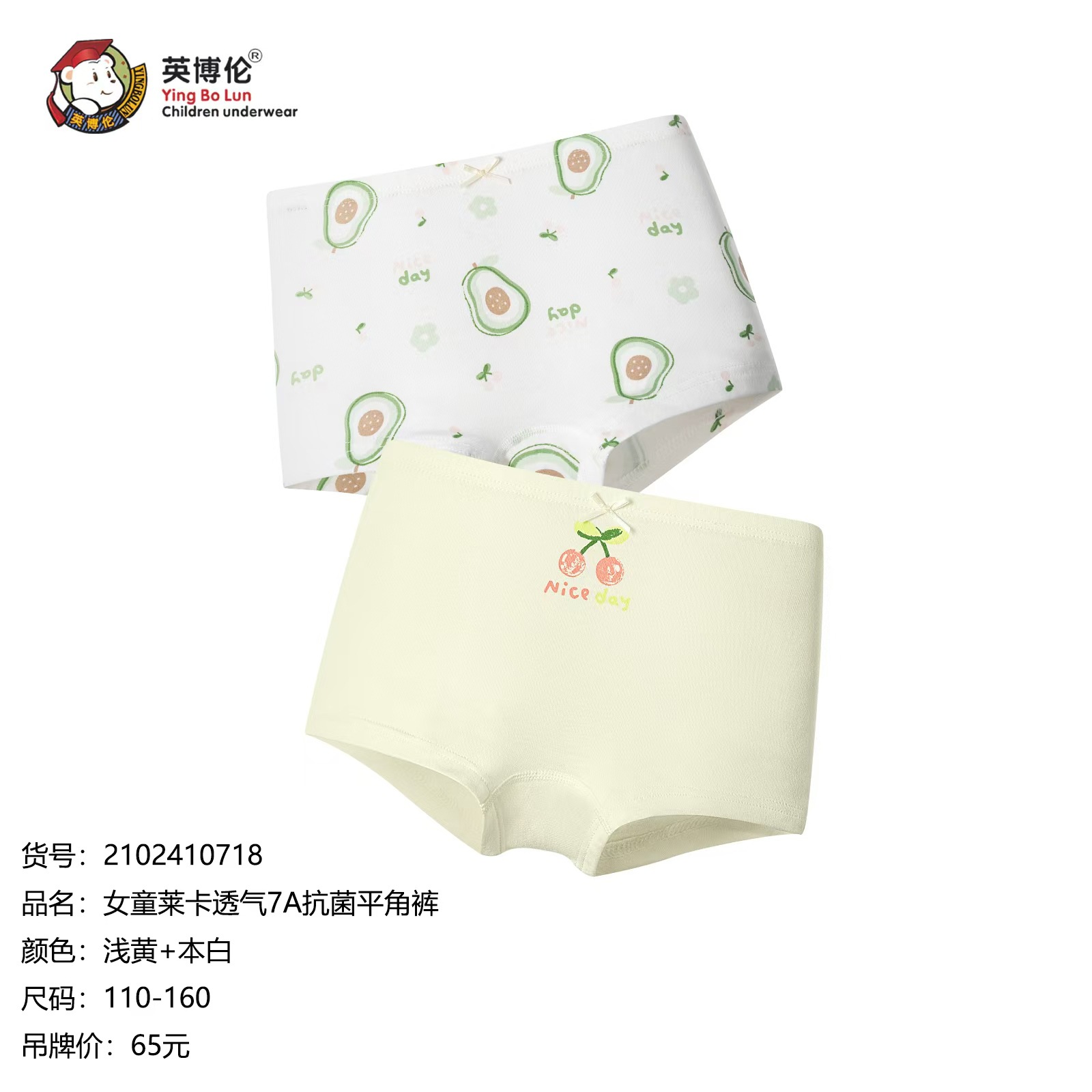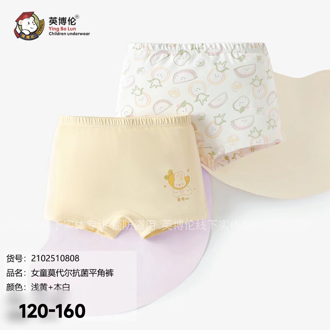 잉보룬 아동용 속옷 여아 사각팬티 한 박스에 두 개입