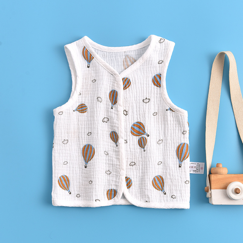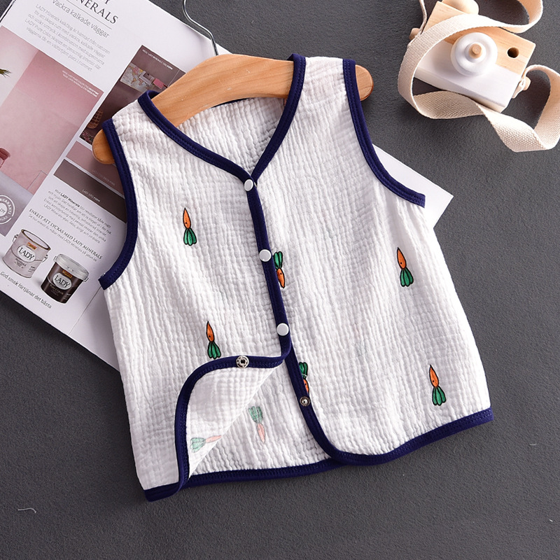 어린이 조끼 착용 단색 면 아기 거즈 조끼 봄과 가을 면 린넨 얇은 여름