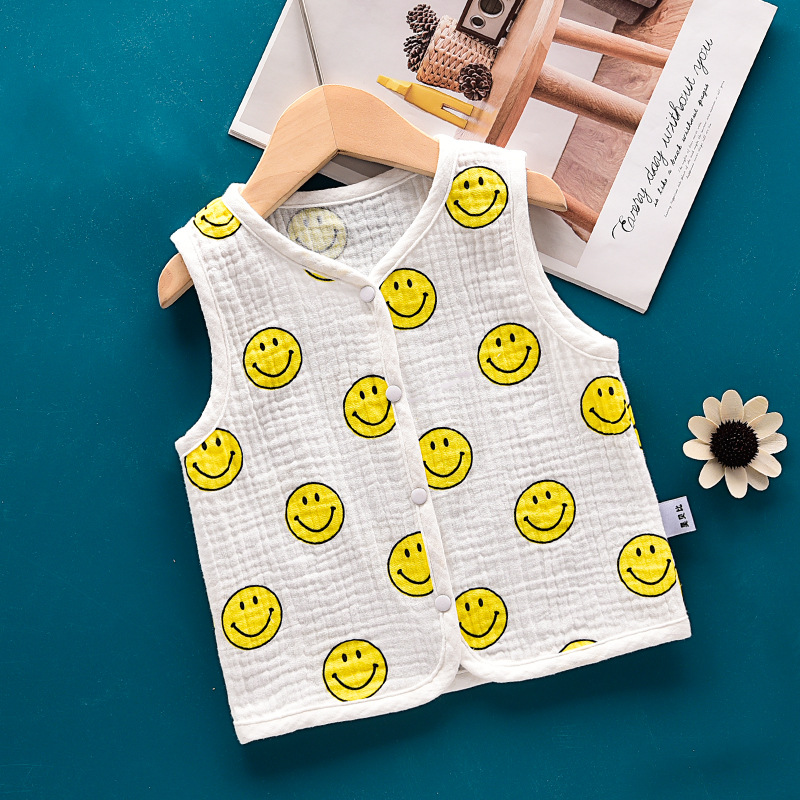 어린이 조끼 착용 단색 면 아기 거즈 조끼 봄과 가을 면 린넨 얇은 여름스토어 가기
