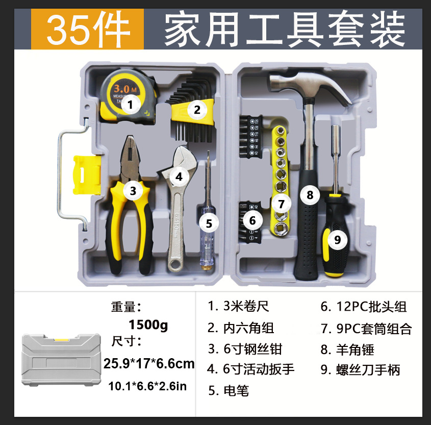 108p 도구 세트 가정용 하드웨어 수동 도구 조합 자동차 수리 키트 도구 상자 아마존 도매스토어 가기