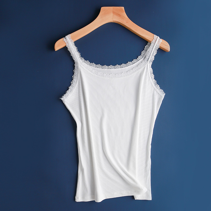실크 코튼 레이스 셔츠 2020 여름 새로운 높은 탄성 클래식 모든 매치 조끼 여성용 블랙 화이트