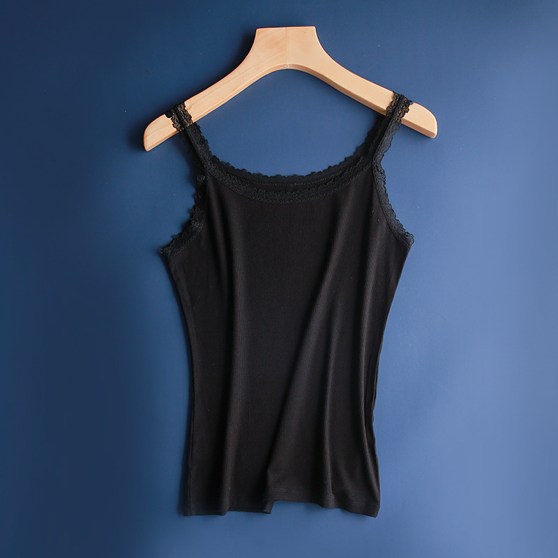 실크 코튼 레이스 셔츠 2020 여름 새로운 높은 탄성 클래식 모든 매치 조끼 여성용 블랙 화이트스토어 가기