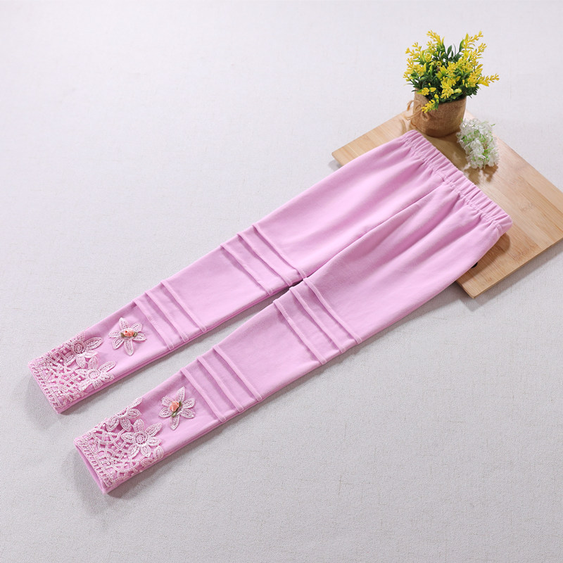 새로운 아동복 여아 레깅스 봄, 가을 순면 얇은 겉옷 아동용 세련된 다용도 레이스 긴 바지