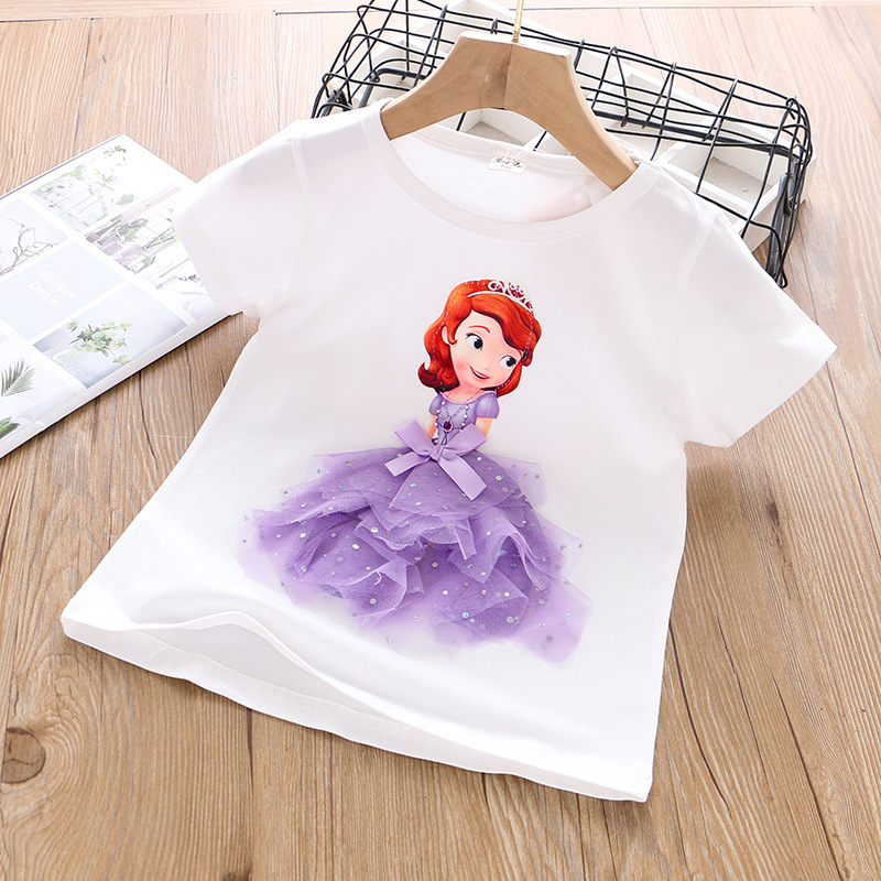 여자 반소매 티셔츠 2024 새로운 여름 서양식 한국 스타일 입체 공주 어린이 반소매 국경 아마존