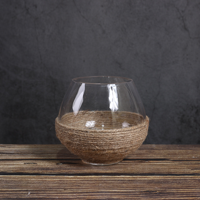 현대 간단한 북유럽 타원형 대마 로프 유리 꽃병 장식품 홈 모델 룸 데스크탑 부드러운 장식 용품
