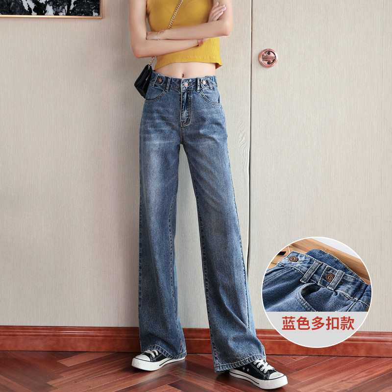 사계절 활용 가능한 여성용 하이웨이스트 와이드 레그 데님 팬츠, 루즈핏, 슬림하고 키가 길어보이는 스트레이트 팬츠스토어 가기