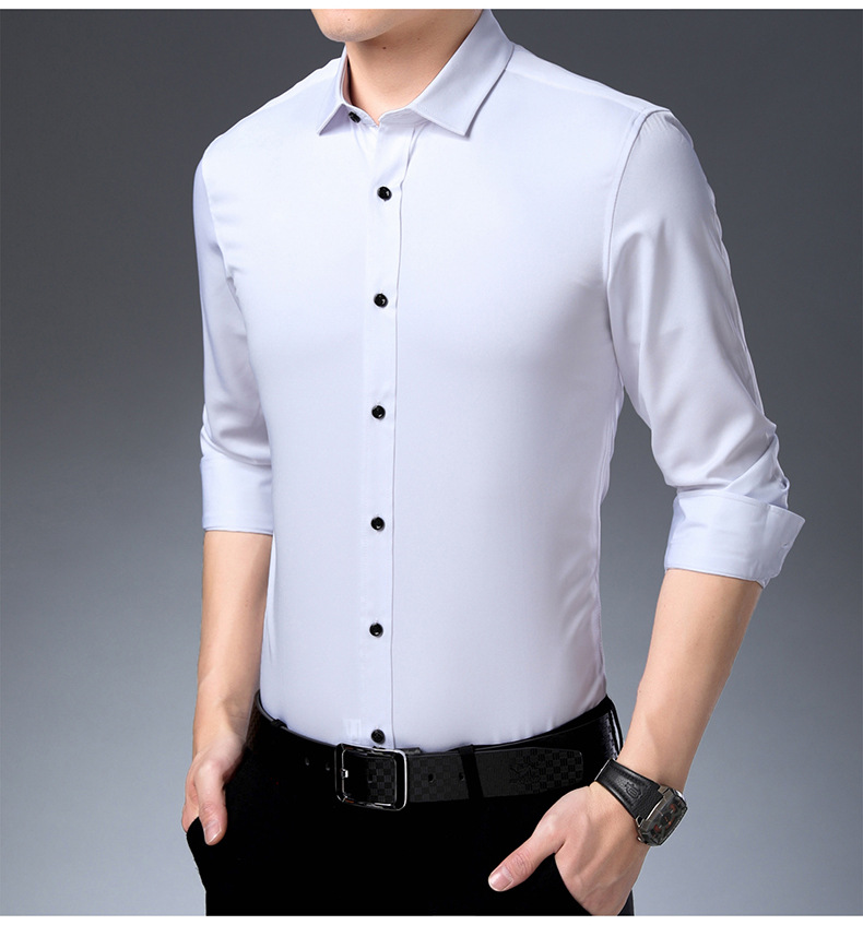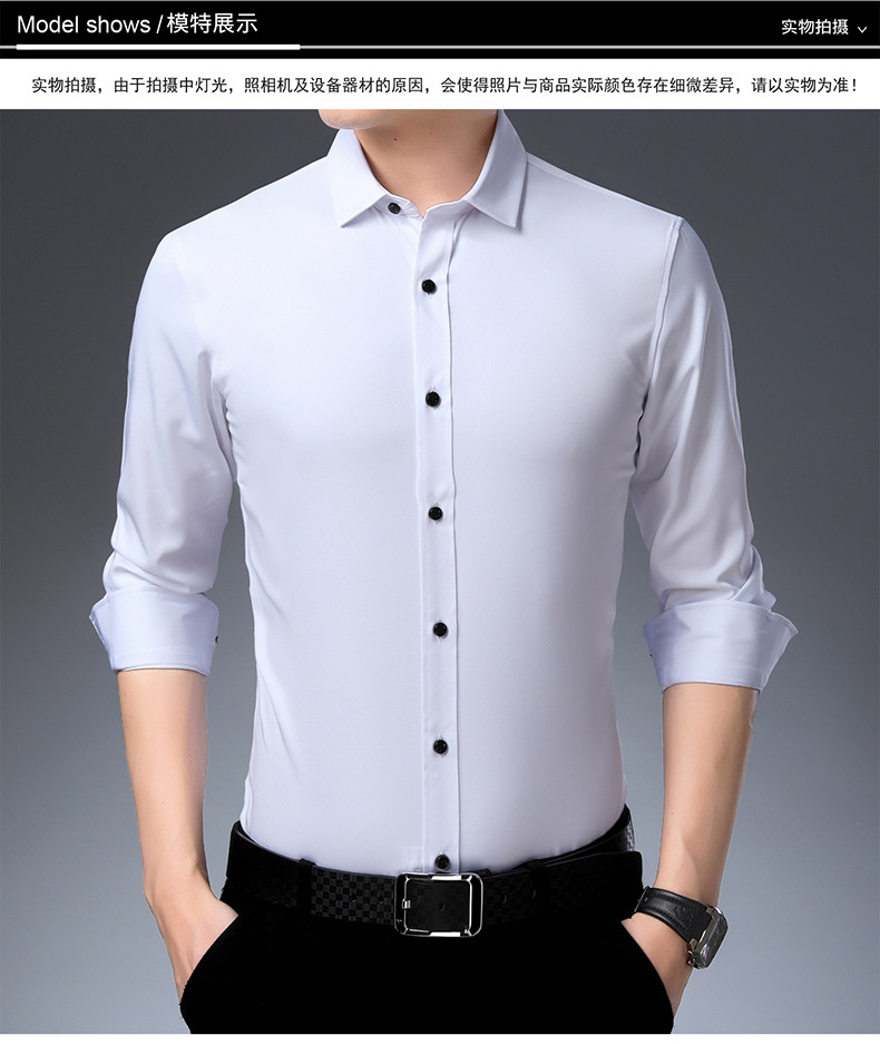 네 방향 스트레치 남성 셔츠 긴팔 트렌디 화이트 셔츠 남성 정장 비즈니스 셔츠 남성 다림질 필요 없는 빅사이즈 남성복스토어 가기