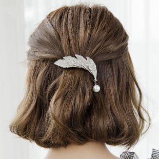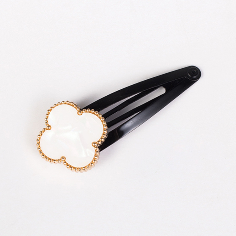 한국 동대문 네 잎 클로버 머리핀 간단한 달콤한 사랑 네 잎 클로버 오리 빌 클립 검은 합금 깨진 헤어 클립