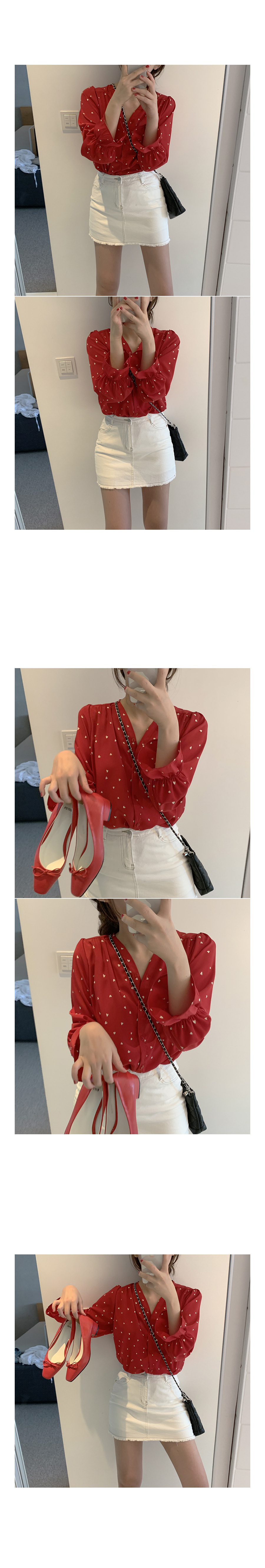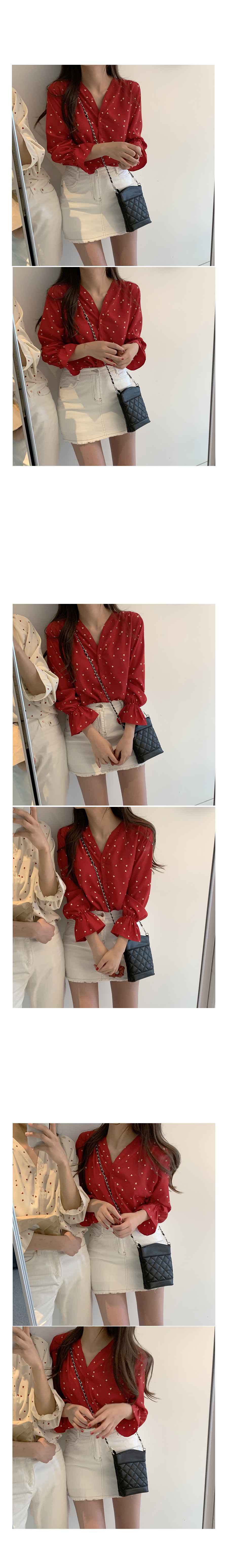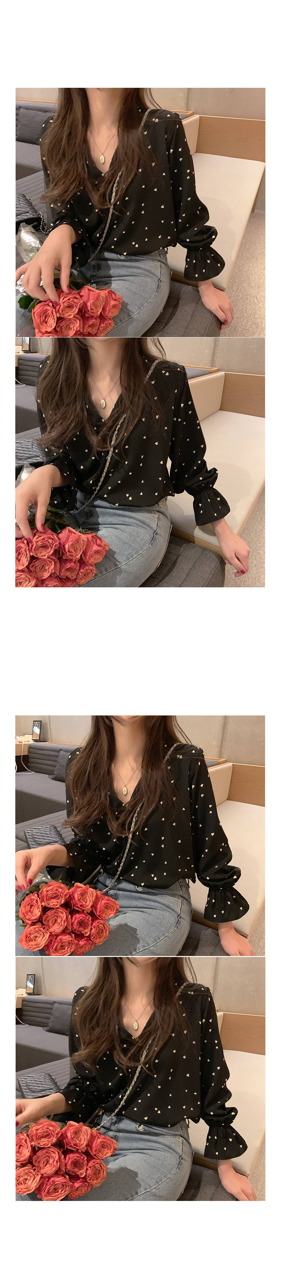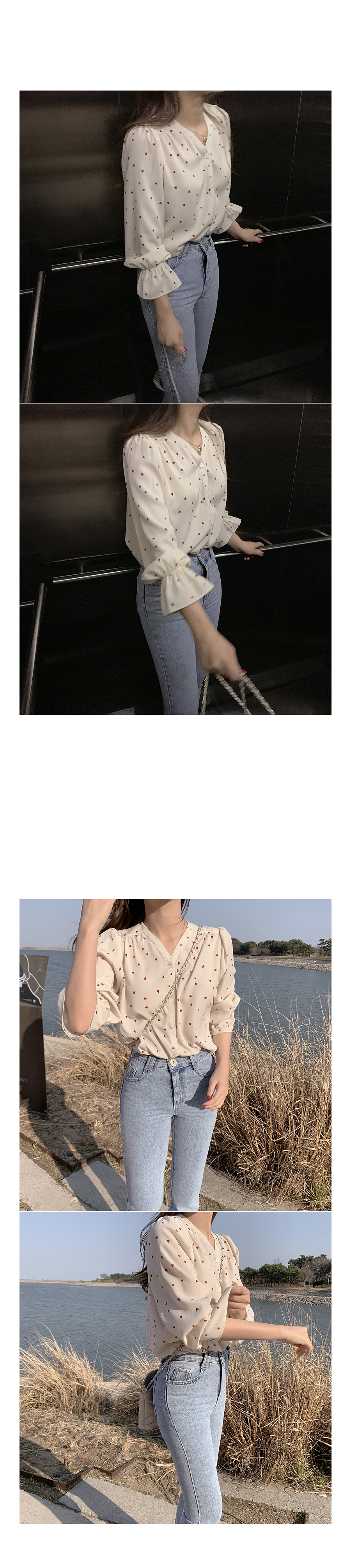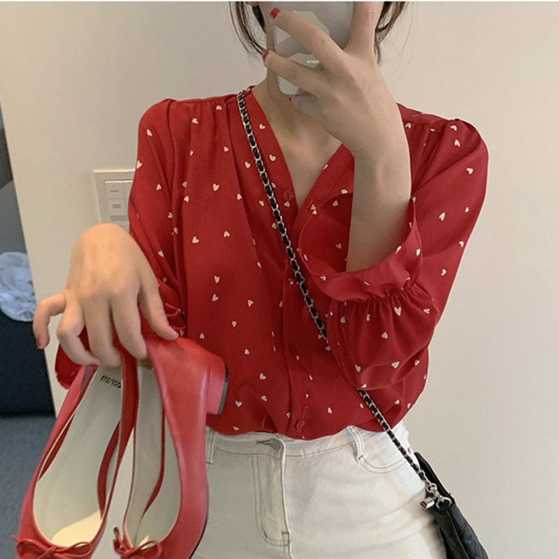 2023 봄 여름 새로운 여성 의류 한국 스타일 신선한 사랑 인쇄 V-넥 쉬폰 셔츠 여성 학생 모든 매치 탑